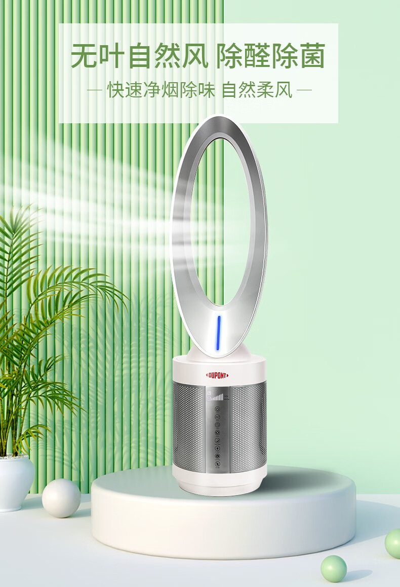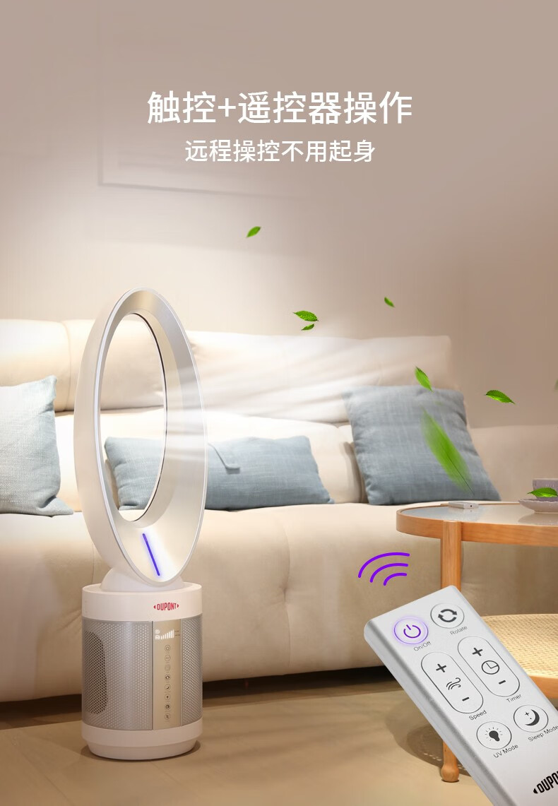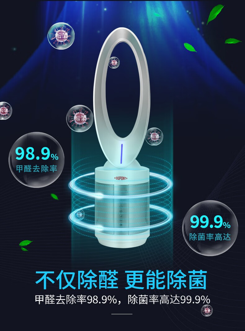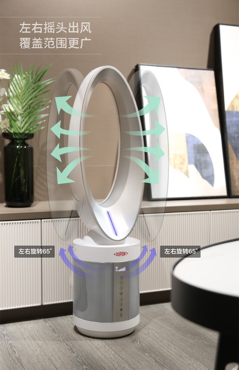 杜邦(DUPONT)空气净化器 多功能无叶净化风扇 家用办公立式自然凉风 离子净化除菌 轻音低噪摇头省电 全屋循环净化KKJ005-F100F