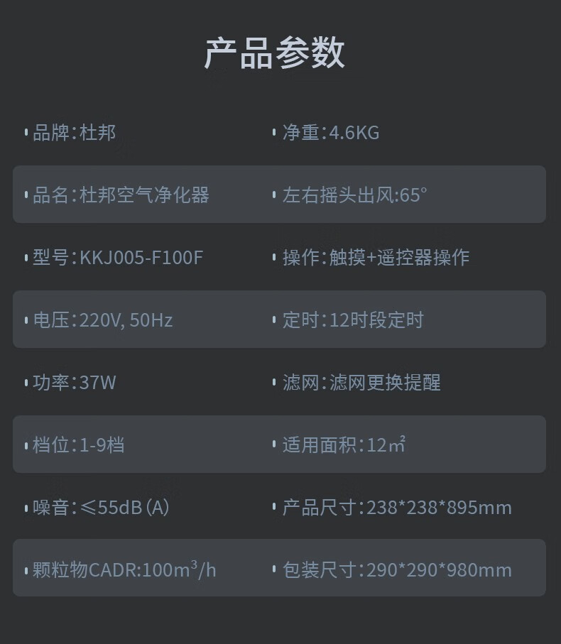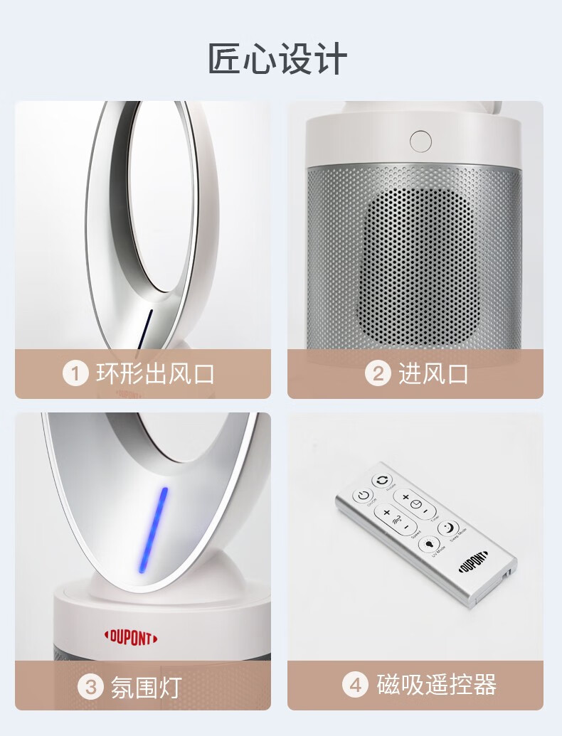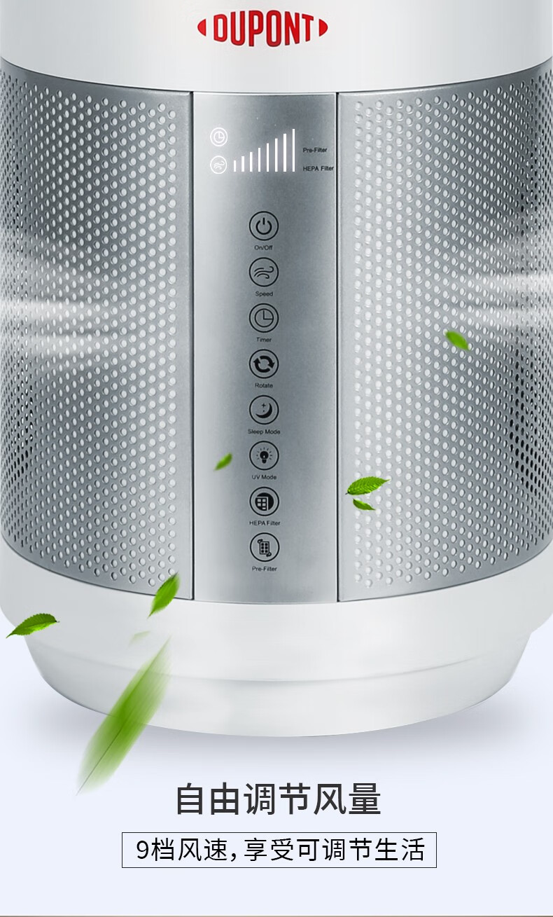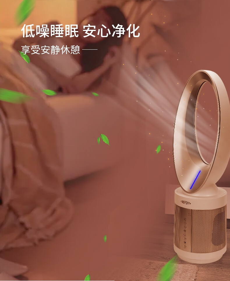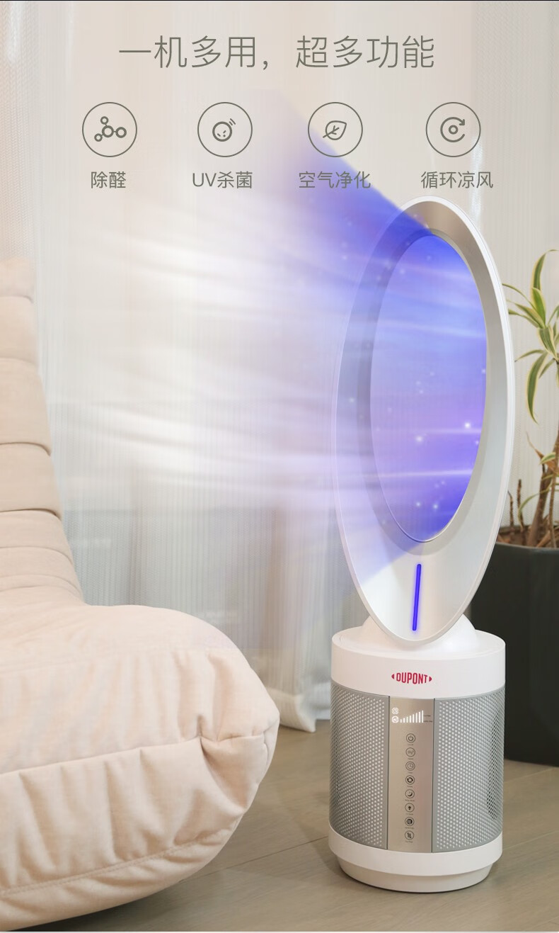杜邦(DUPONT)空气净化器 多功能无叶净化风扇 家用办公立式自然凉风 离子净化除菌 轻音低噪摇头省电 全屋循环净化KKJ005-F100F
