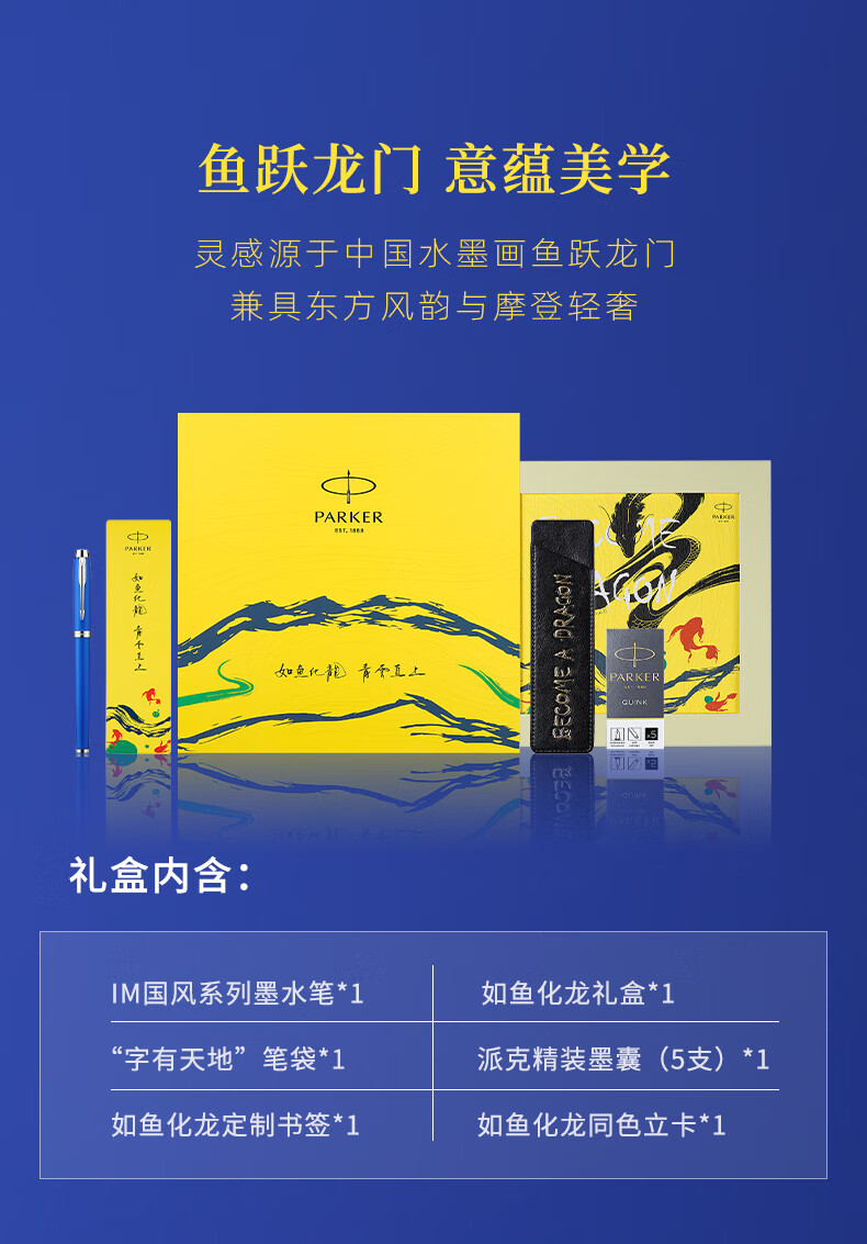 【派克IM】派克(PARKER)钢笔 签字笔 商务送礼 学生练字书法礼品 男女生日礼物 IM国风碧山墨水笔_如鱼化龙礼盒【行情_y