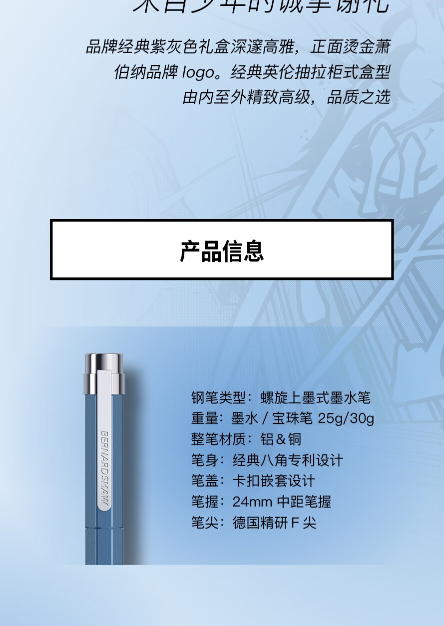【萧伯纳精灵海角雾蓝】萧伯纳(Bernard Shaw)精灵海角雾蓝钢笔 单支装礼盒【行情 报价 价格 评测】
