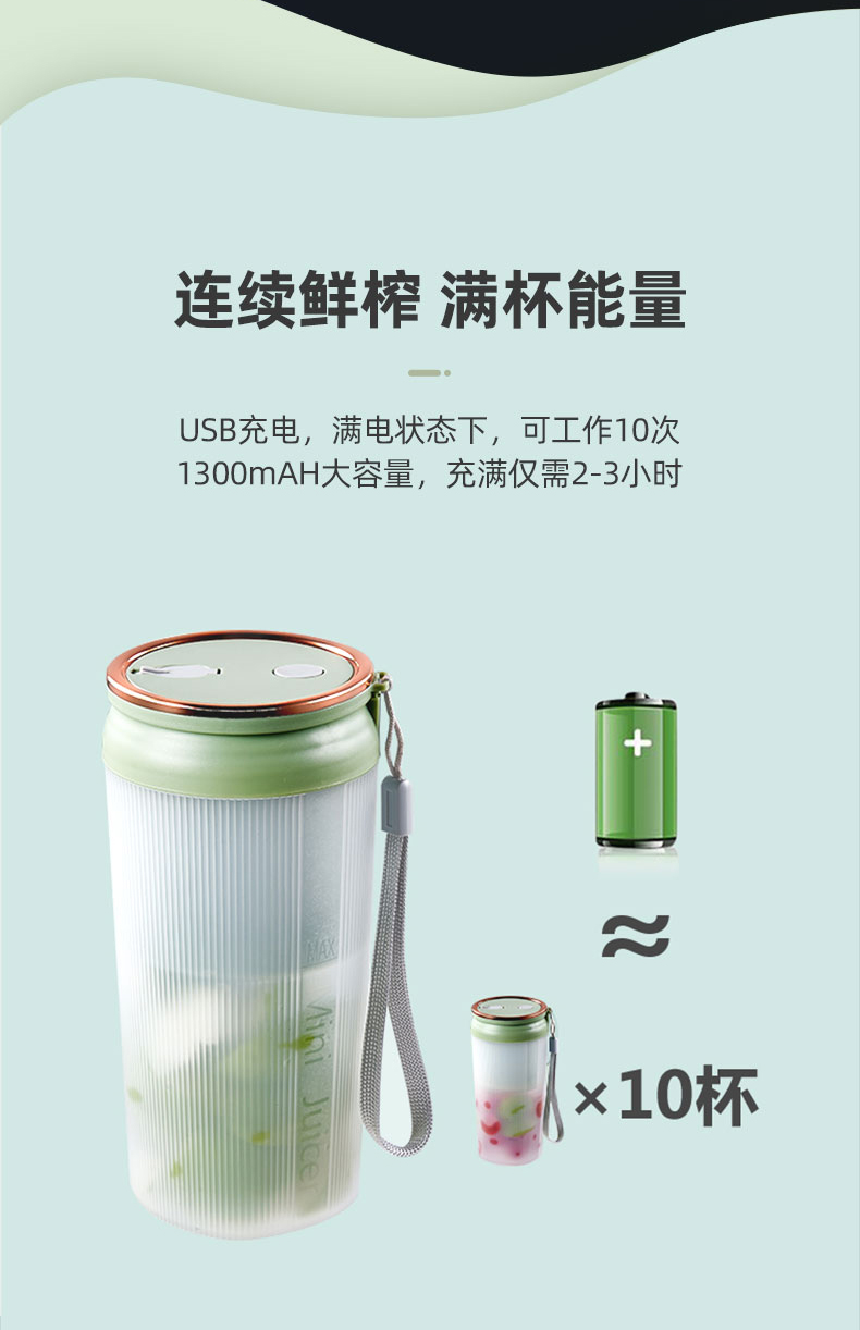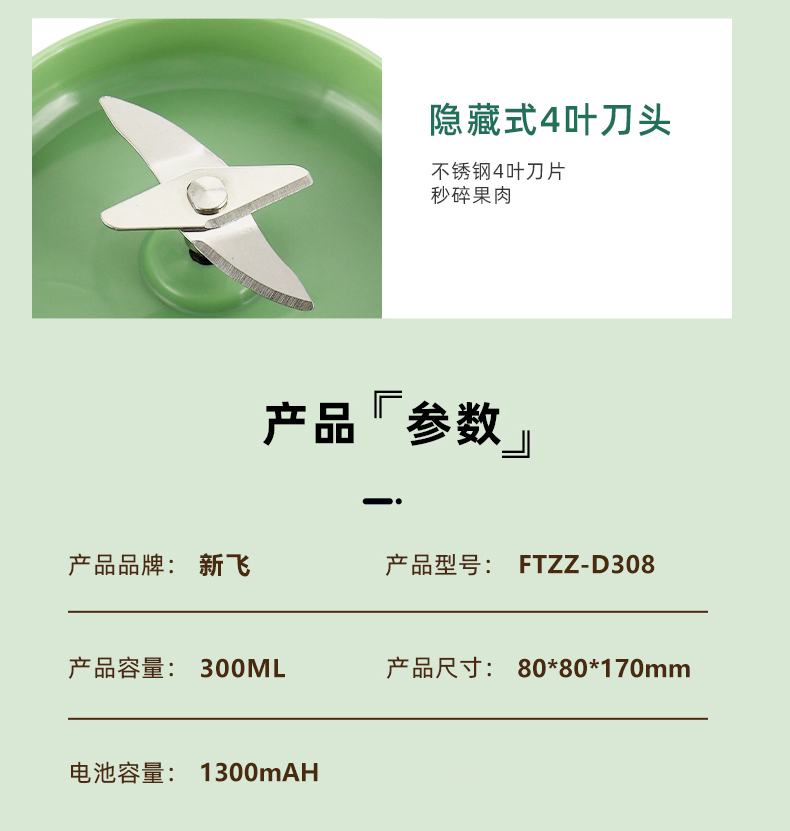 新飞(Frestec) 榨汁机便携式充电果汁杯随行搅拌杯 FTZZ-D308 榨汁杯