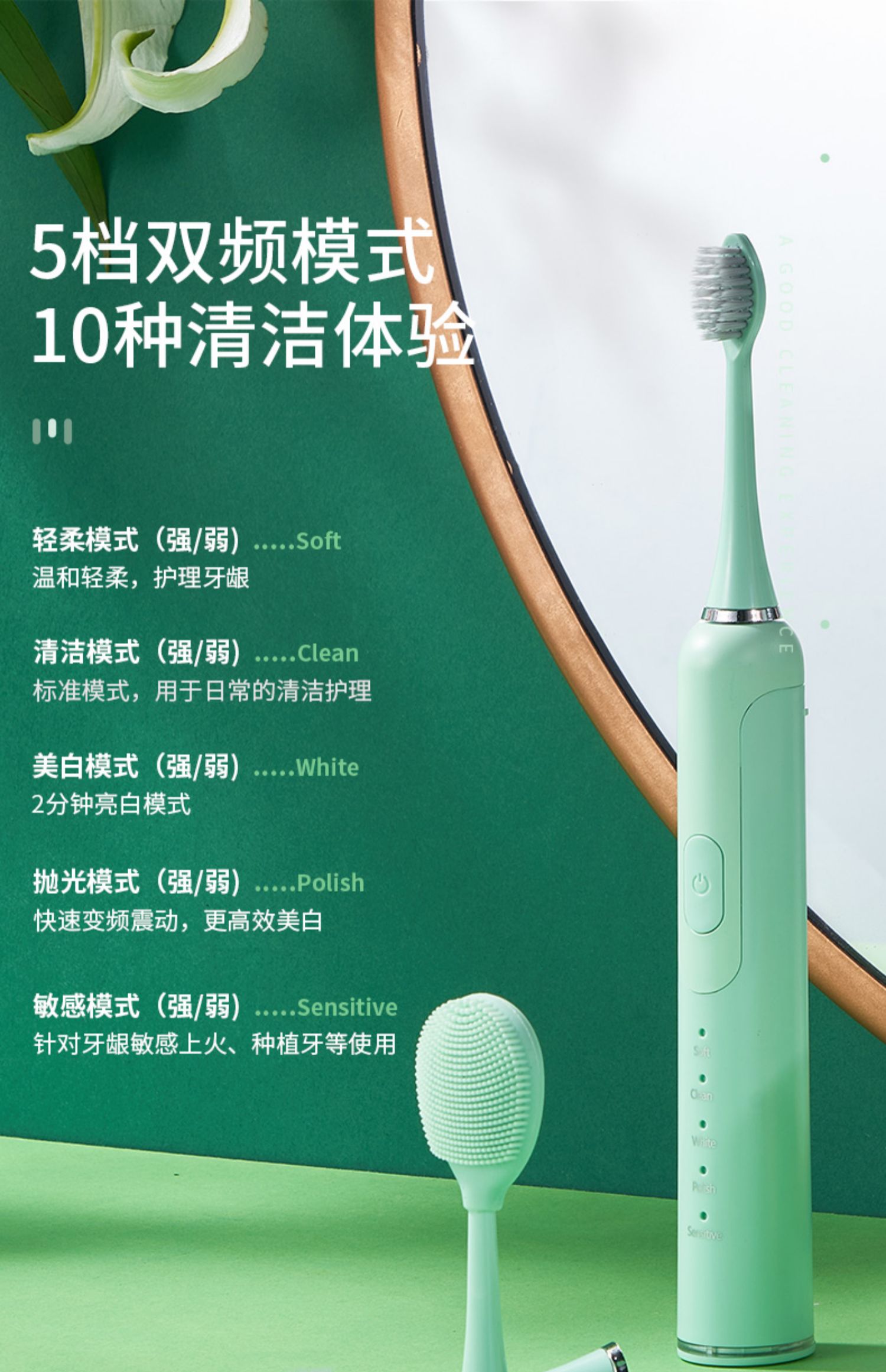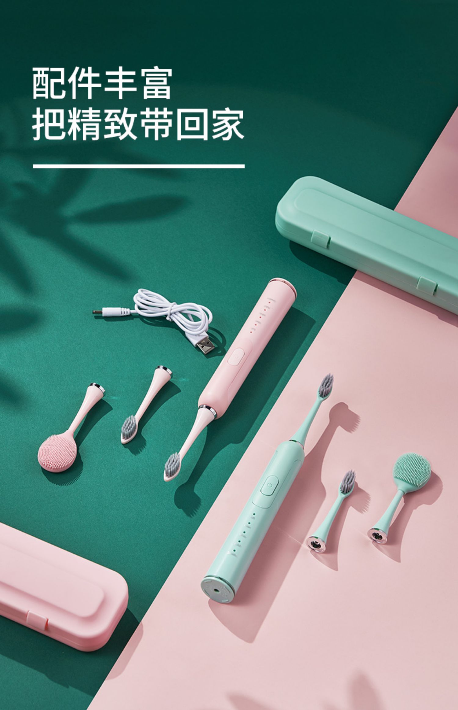 绿色-刷头*3 洁面刷*1 旅行盒 旅行包