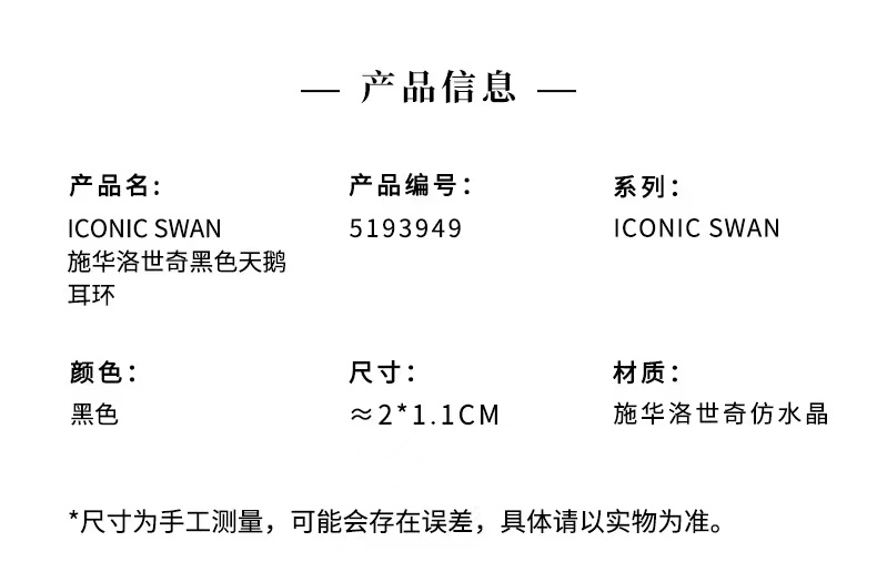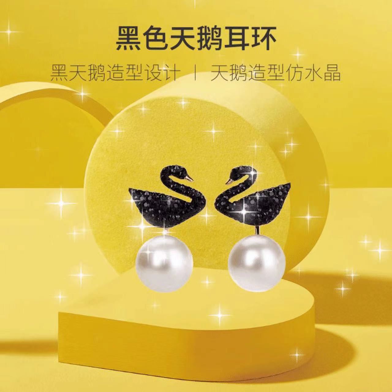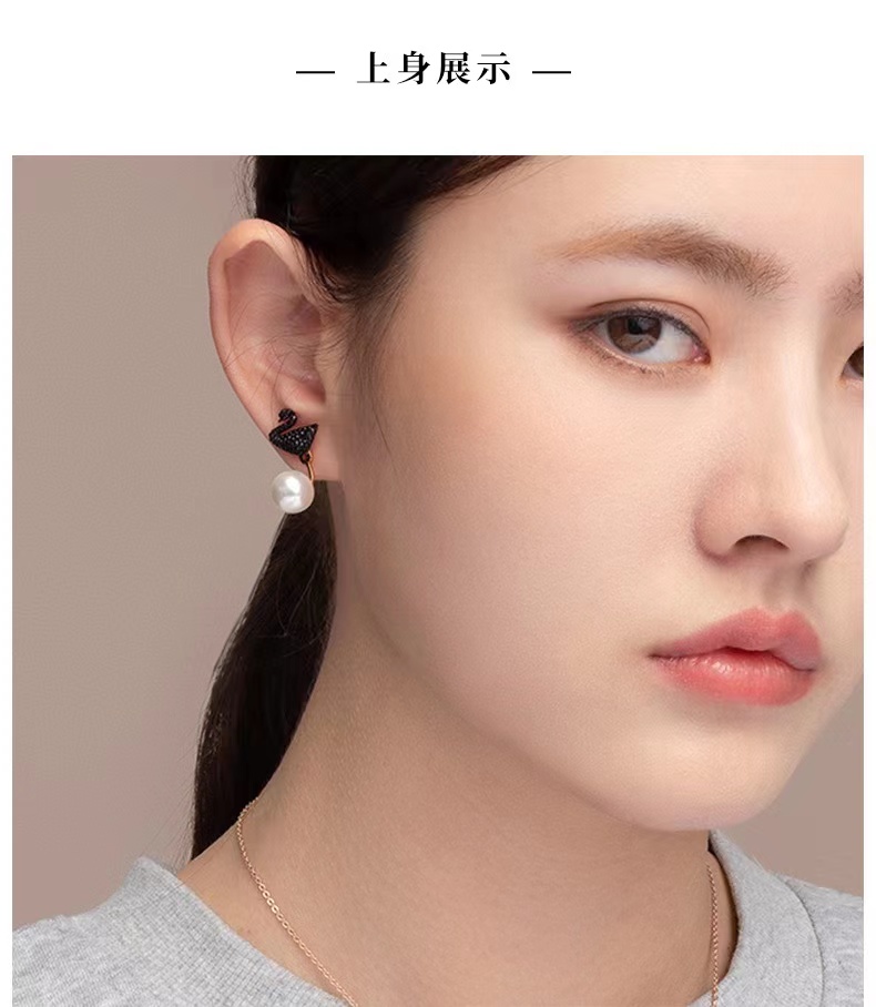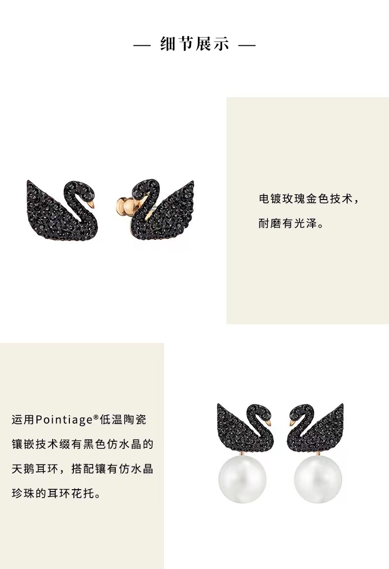 施华洛世奇黑色天鹅 ICONIC SWAN 后挂式珠光 女耳环礼物