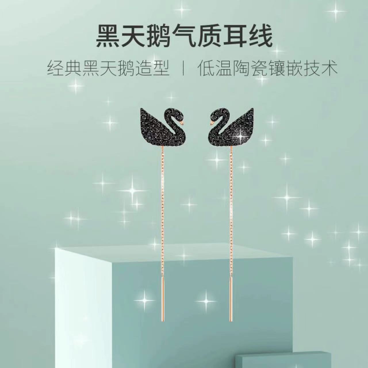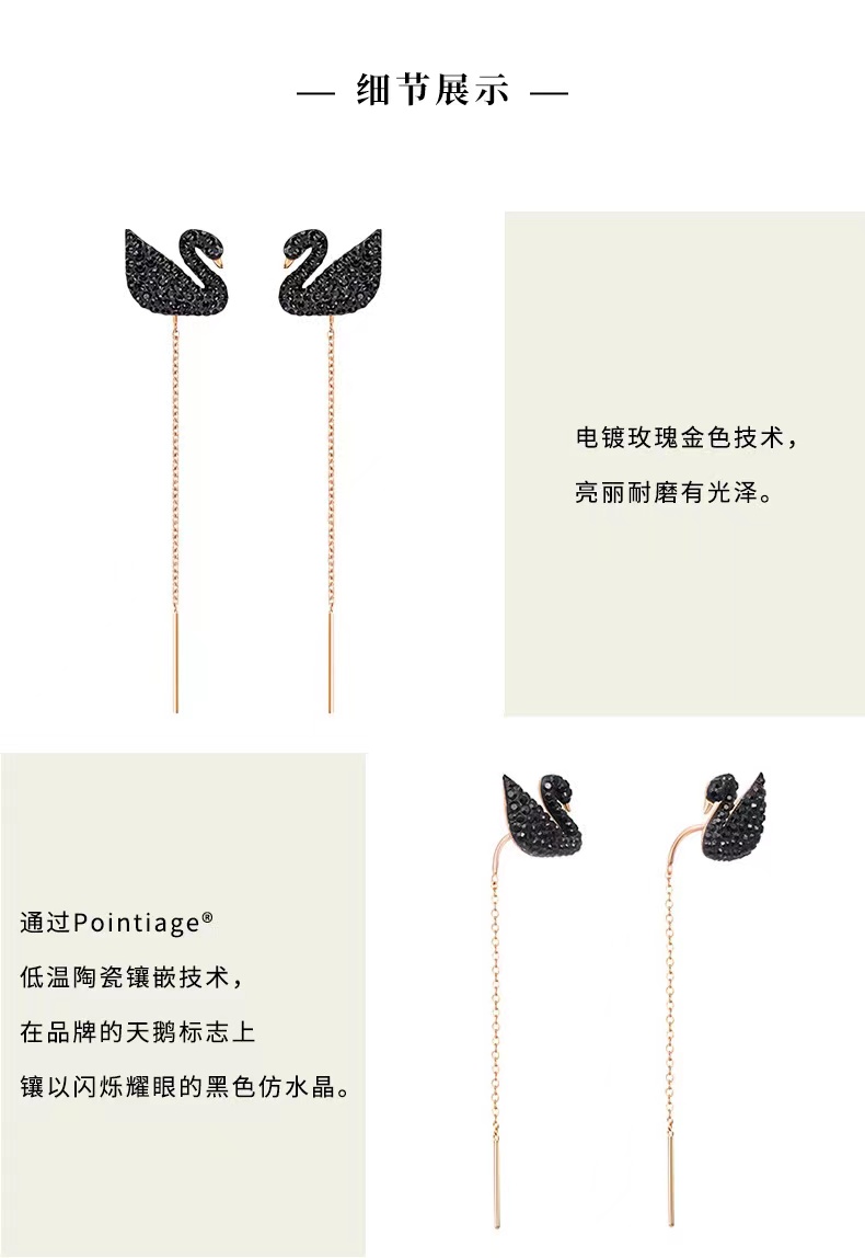施华洛世奇黑色天鹅 ICONIC SWAN妩媚典雅女耳环礼物