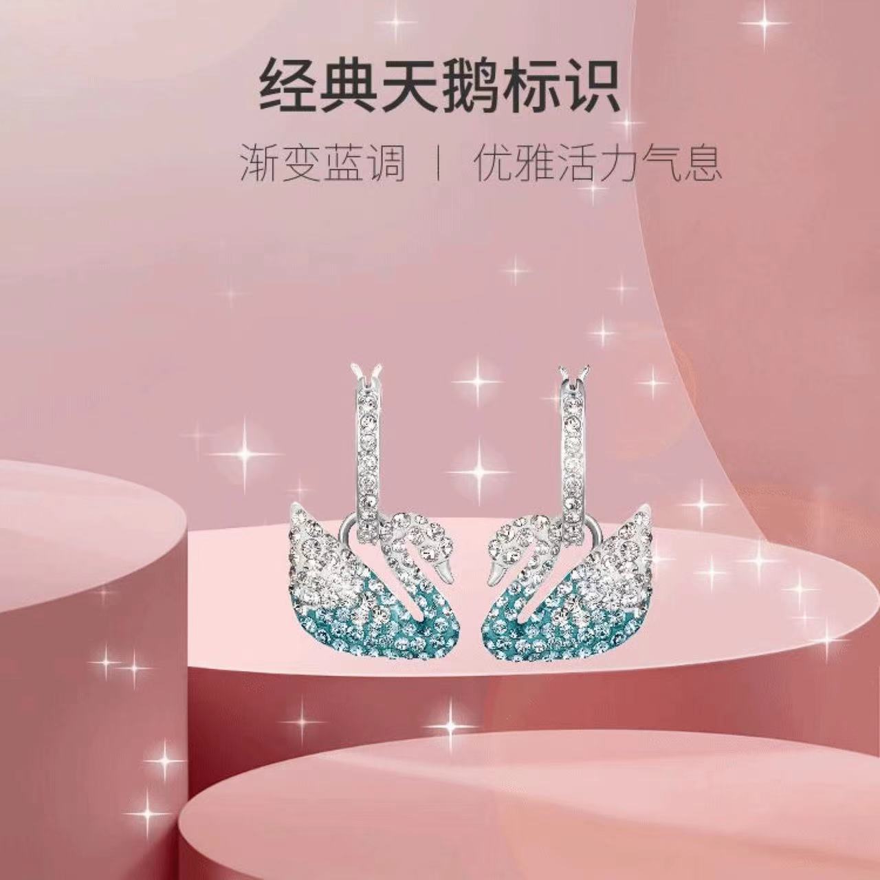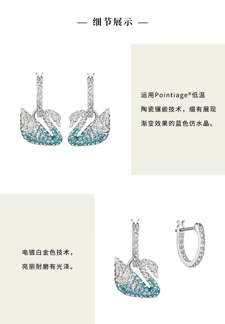 施华洛世奇蓝色天鹅 ICONIC SWAN 柔美浪漫 女耳环礼物
