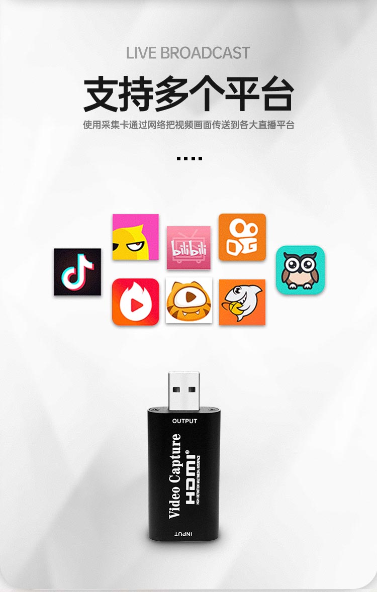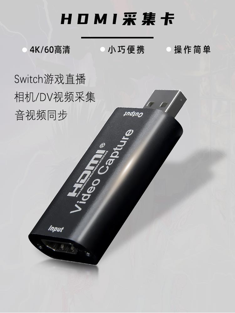 HDMI转USB 2.0视频采集卡1080P高清录像机switch游戏直播ps4录制