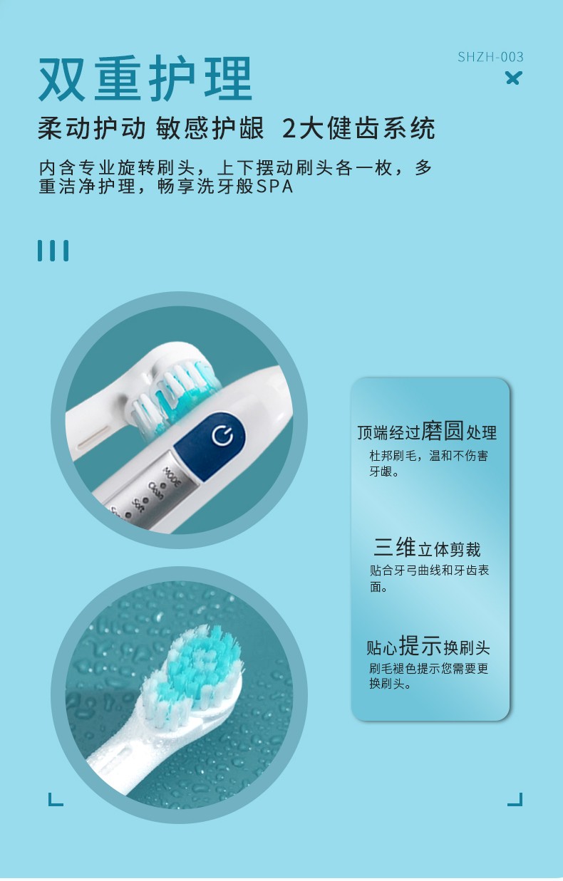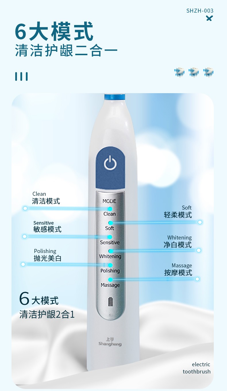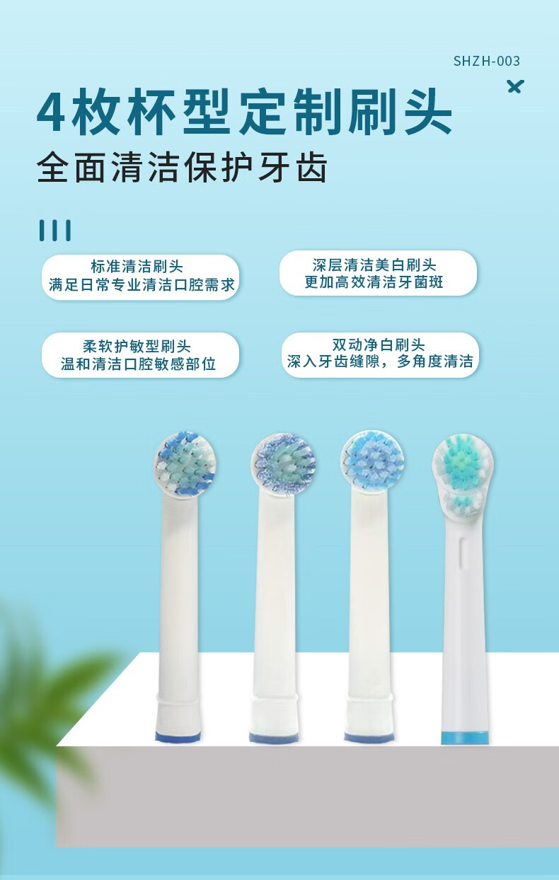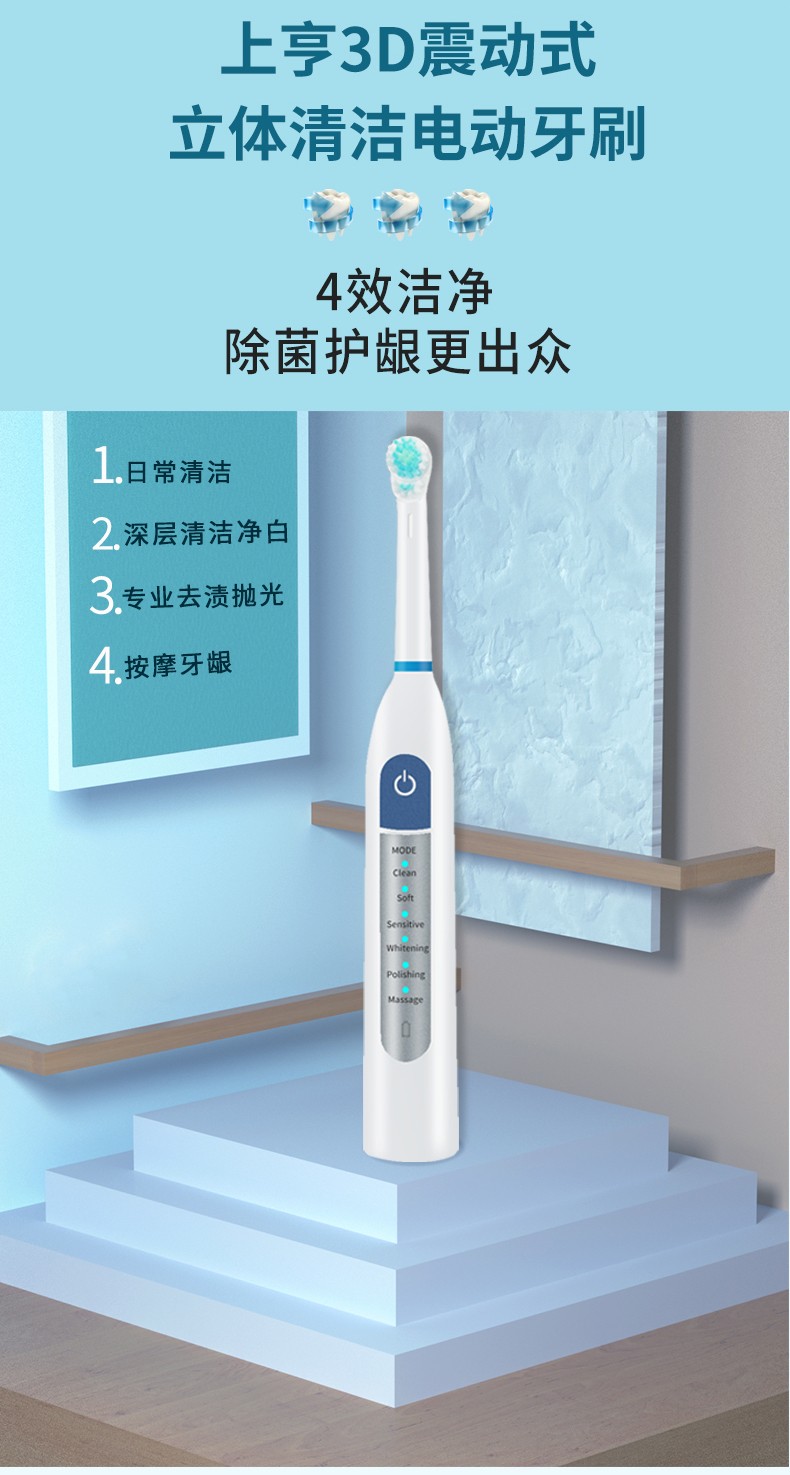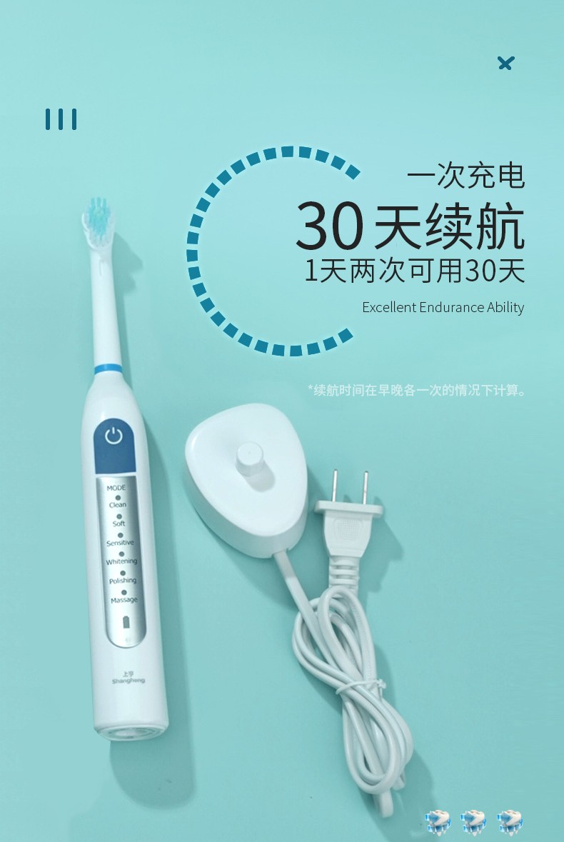 上亨(shangheng) 电动牙刷全自动防水成人智能声波座充美白男女士软毛牙刷超长续航牙医推荐 蓝白色【多种模式 旋转马达 4个刷头】SHZH-003