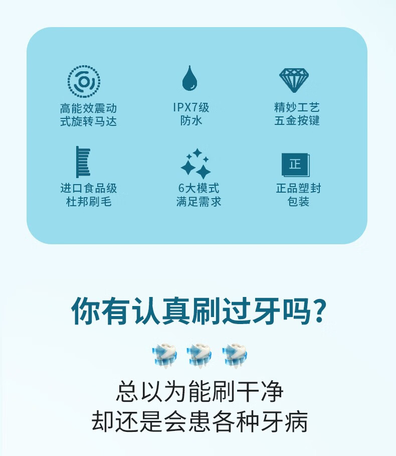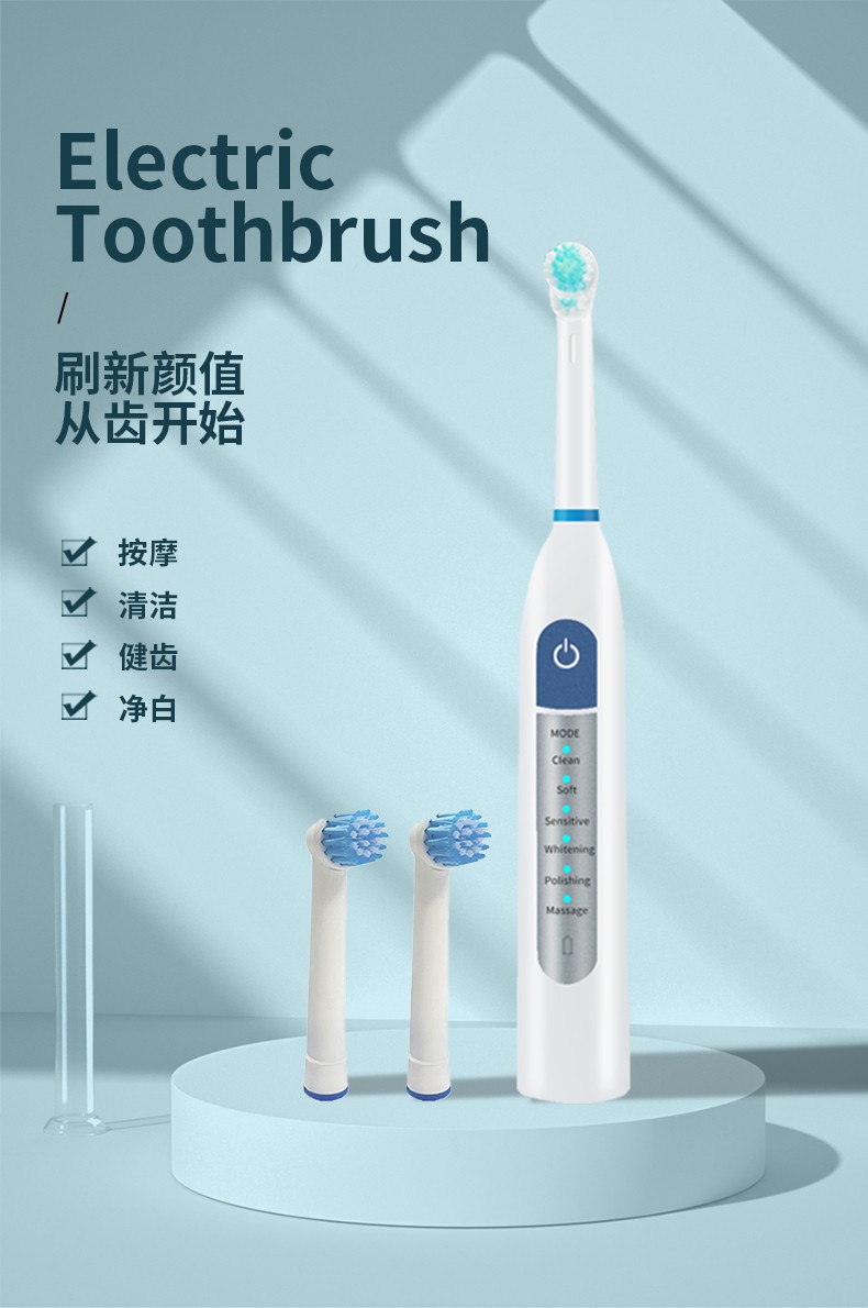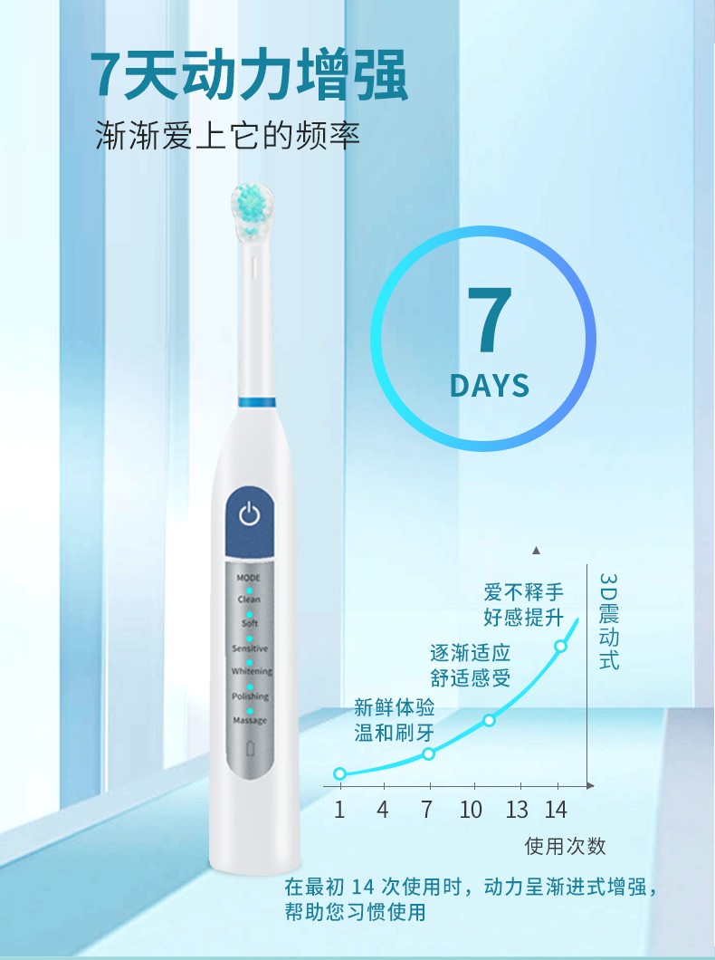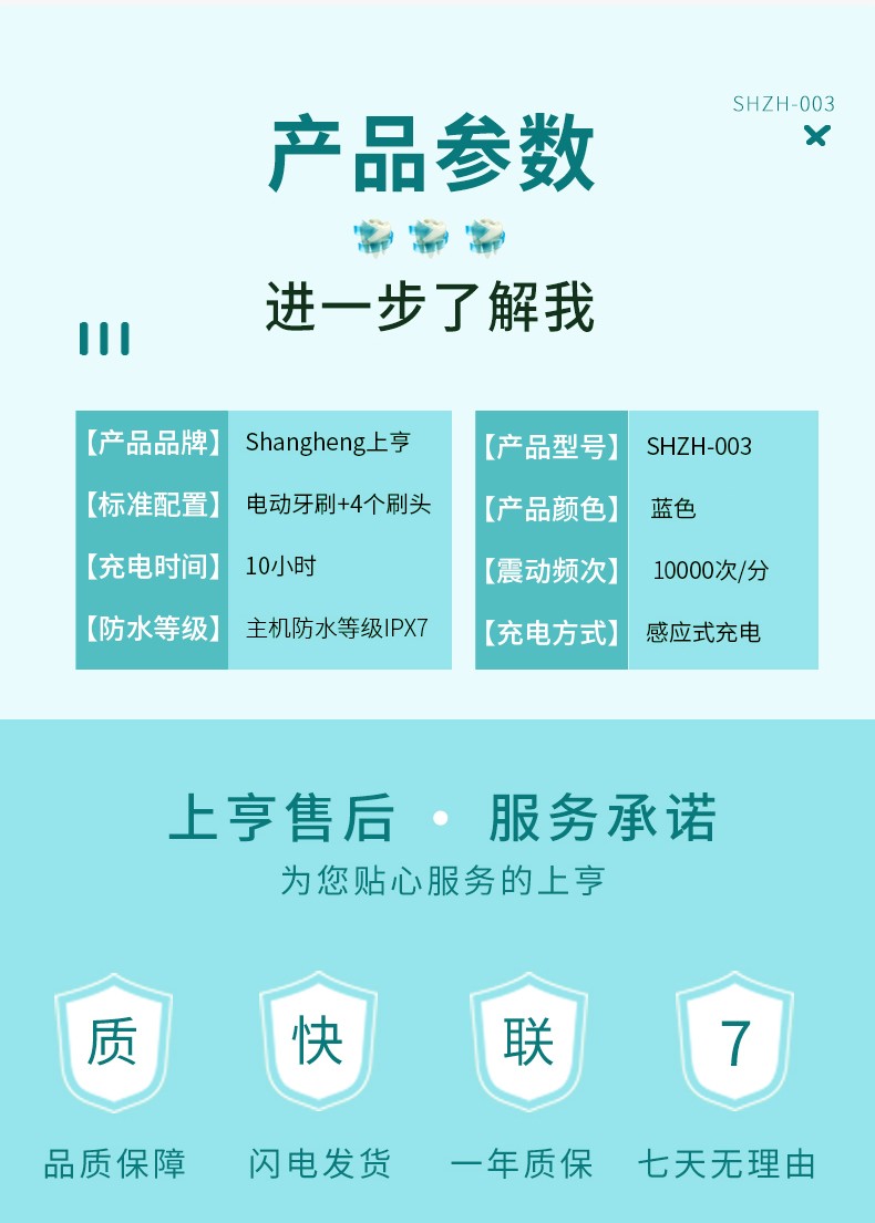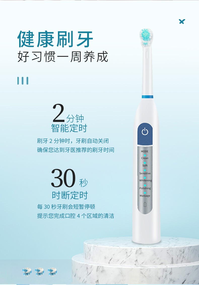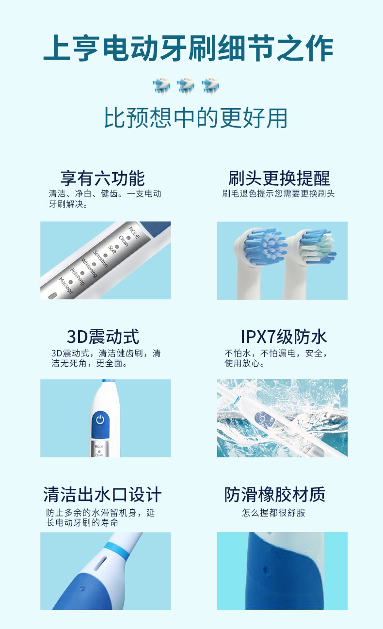 上亨(shangheng) 电动牙刷全自动防水成人智能声波座充美白男女士软毛牙刷超长续航牙医推荐 蓝白色【多种模式 旋转马达 4个刷头】SHZH-003