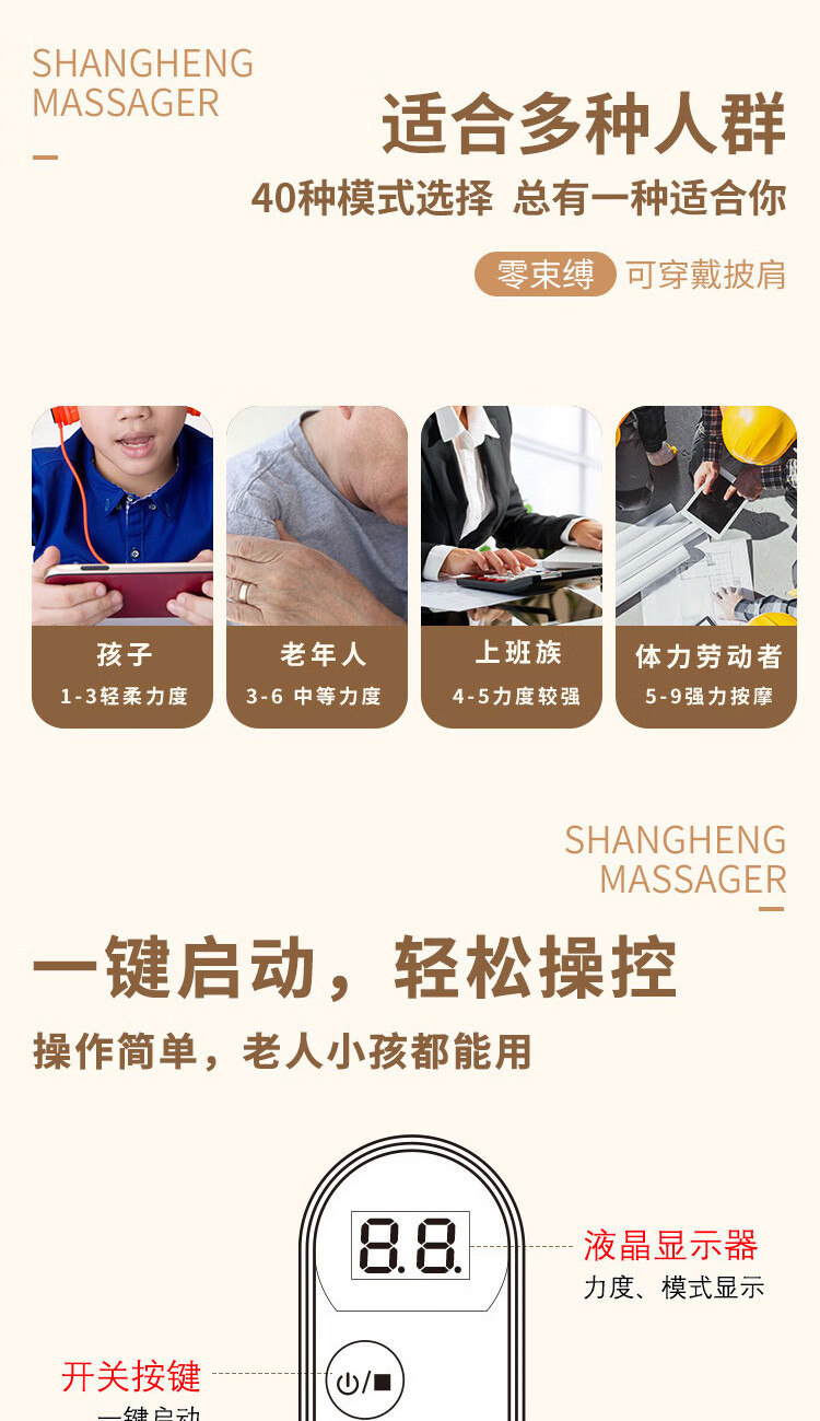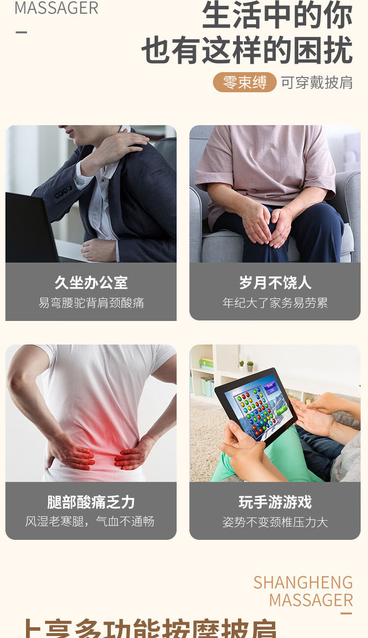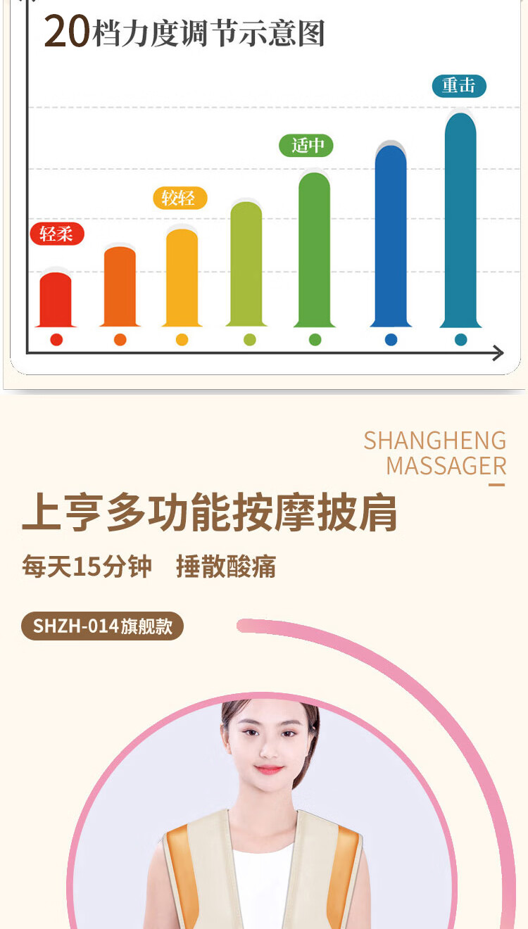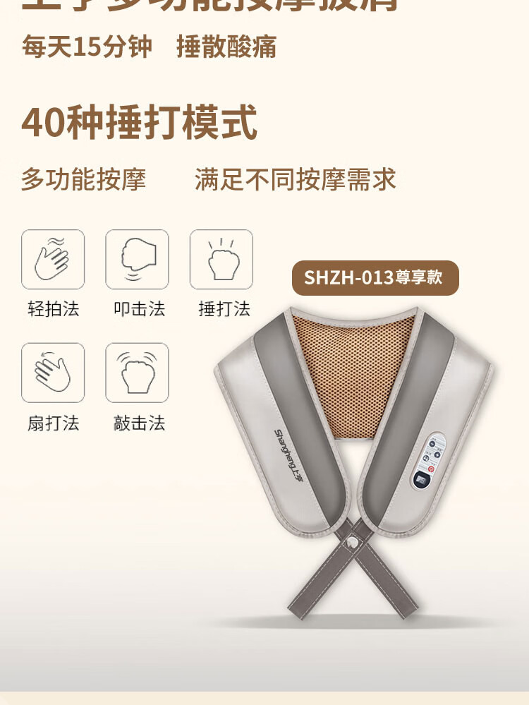 上亨(shangheng) 按摩披肩捶打颈椎按摩器肩颈部脖子背部腰部按摩仪多功能电动揉捏一体解放双手 旗舰款【100种捶打模式 20档捶打力度】SHZH-014