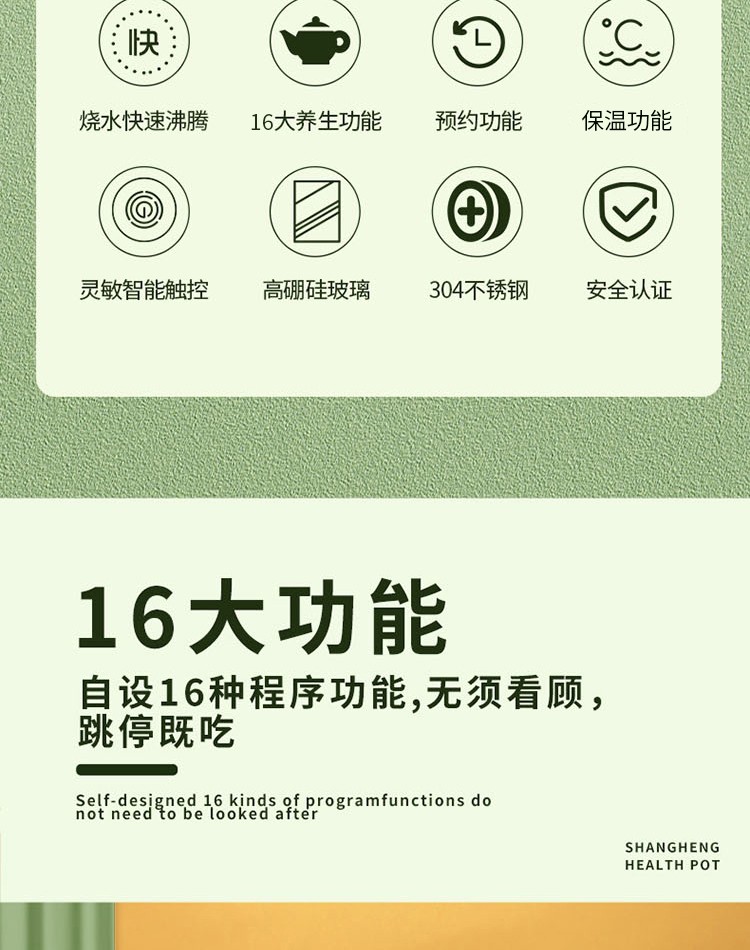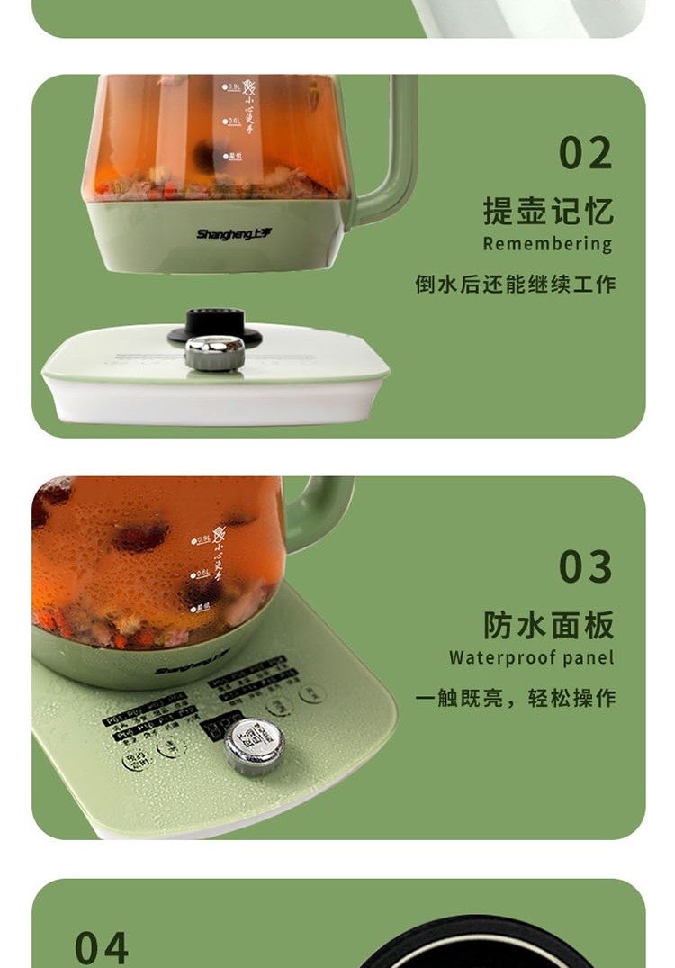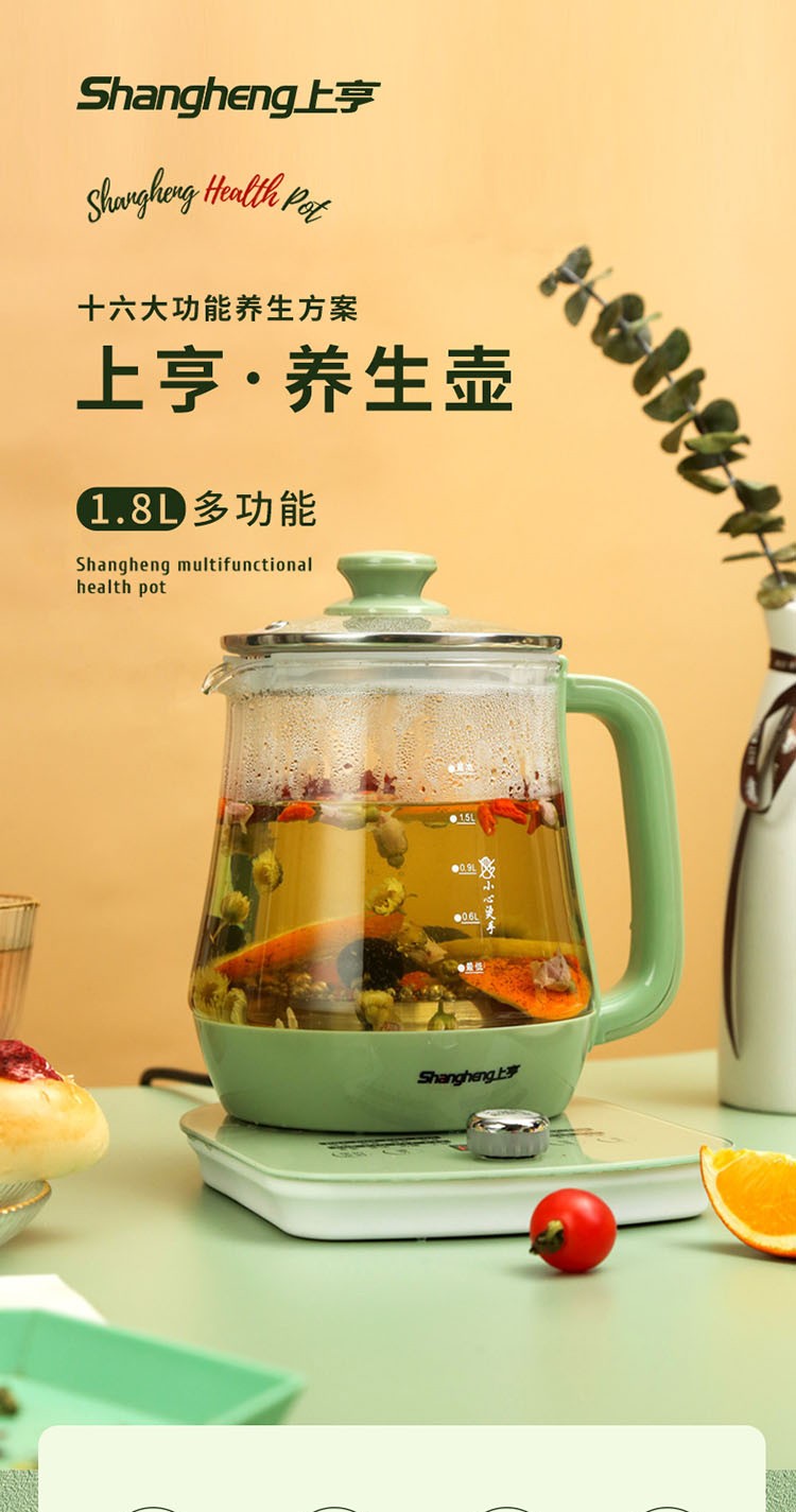上亨(shangheng) 养生壶办公室家用自动玻璃煮茶器多功能小型1.8L保温烧水壶花茶壶电热水壶 SHZH-CFY03不加滤网【16大功能 智能保温】