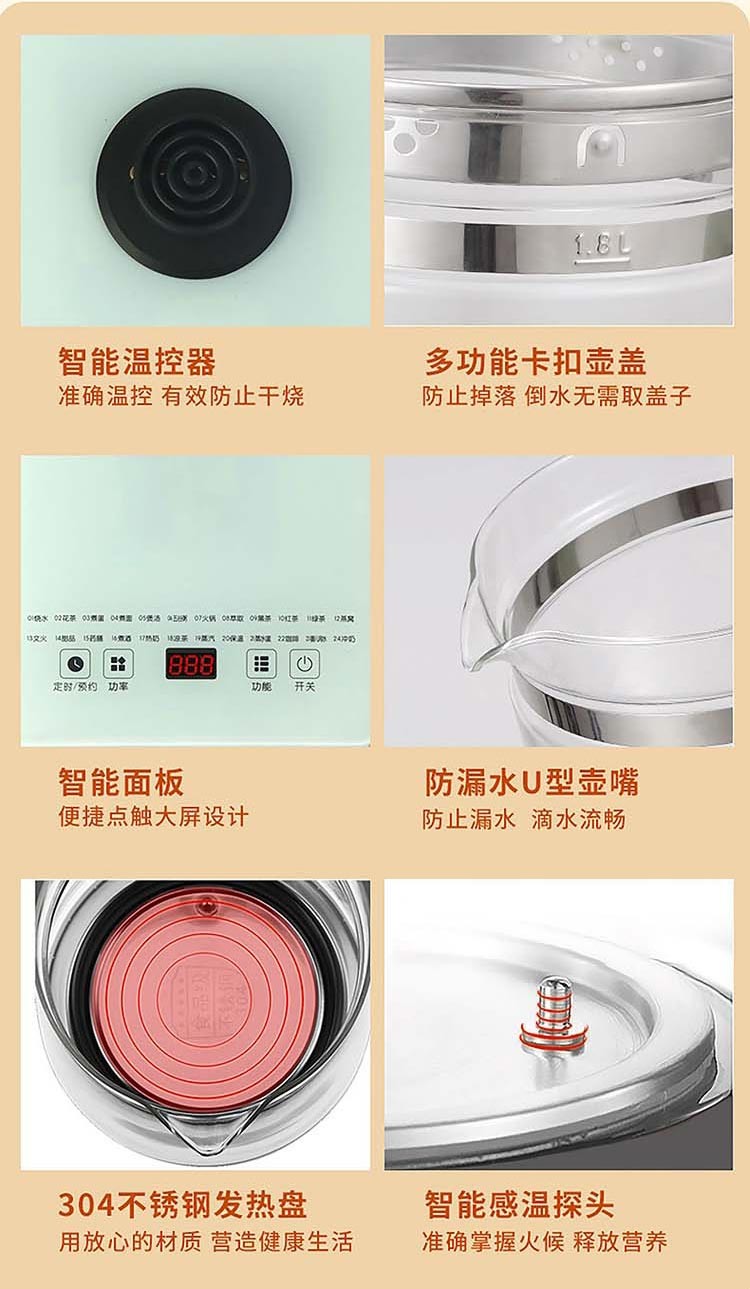 上亨(shangheng) 养生壶煎药壶办公室家用多功能玻璃煮茶器花茶壶保温电热水壶烧水壶 SHZH-CFY04【带蛋架 滤网】