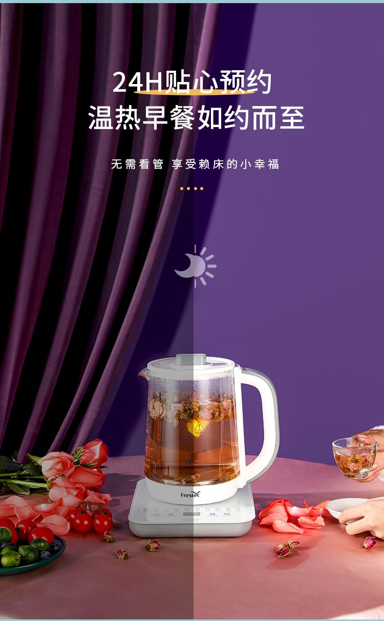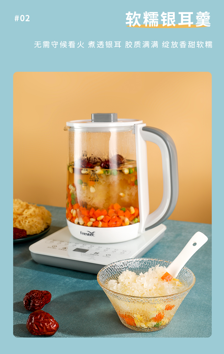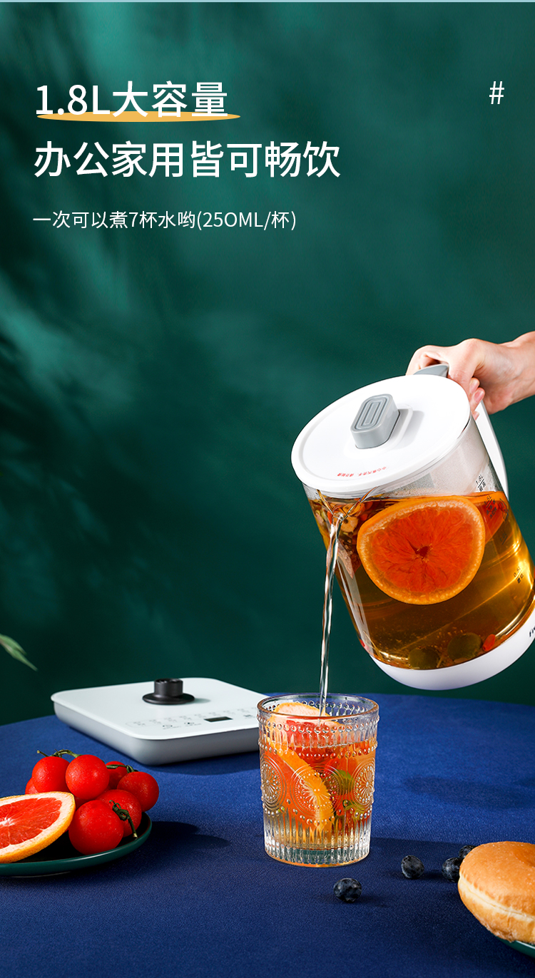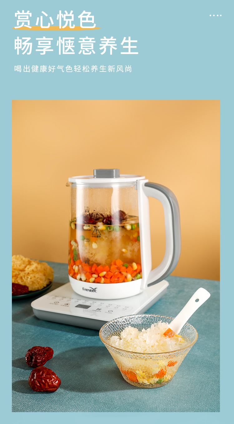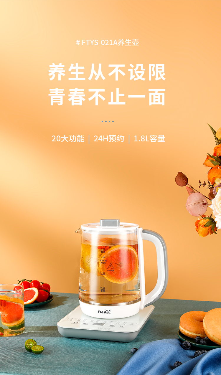 新飞(Frestec) 养生壶1.8L煮茶器茶具电茶壶煮茶壶花茶壶玻璃煎药壶中药锅药膳电热烧水壶 FTYS-021A