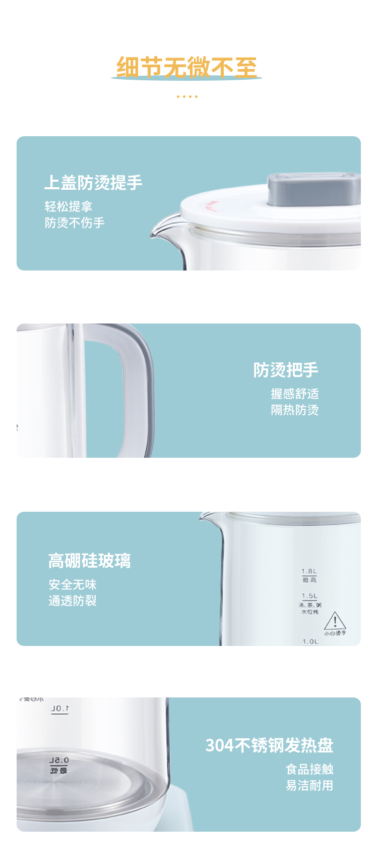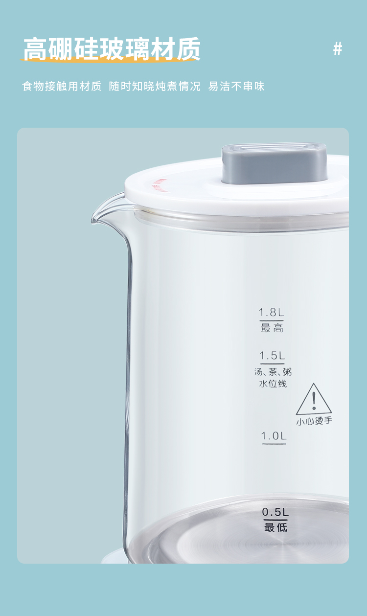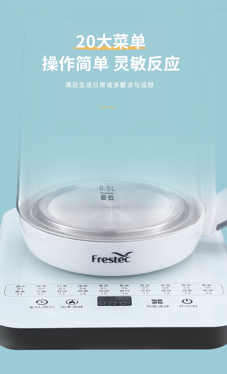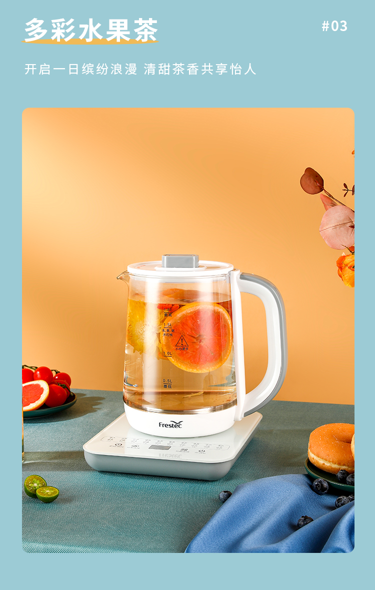 新飞(Frestec) 养生壶1.8L煮茶器茶具电茶壶煮茶壶花茶壶玻璃煎药壶中药锅药膳电热烧水壶 FTYS-021A