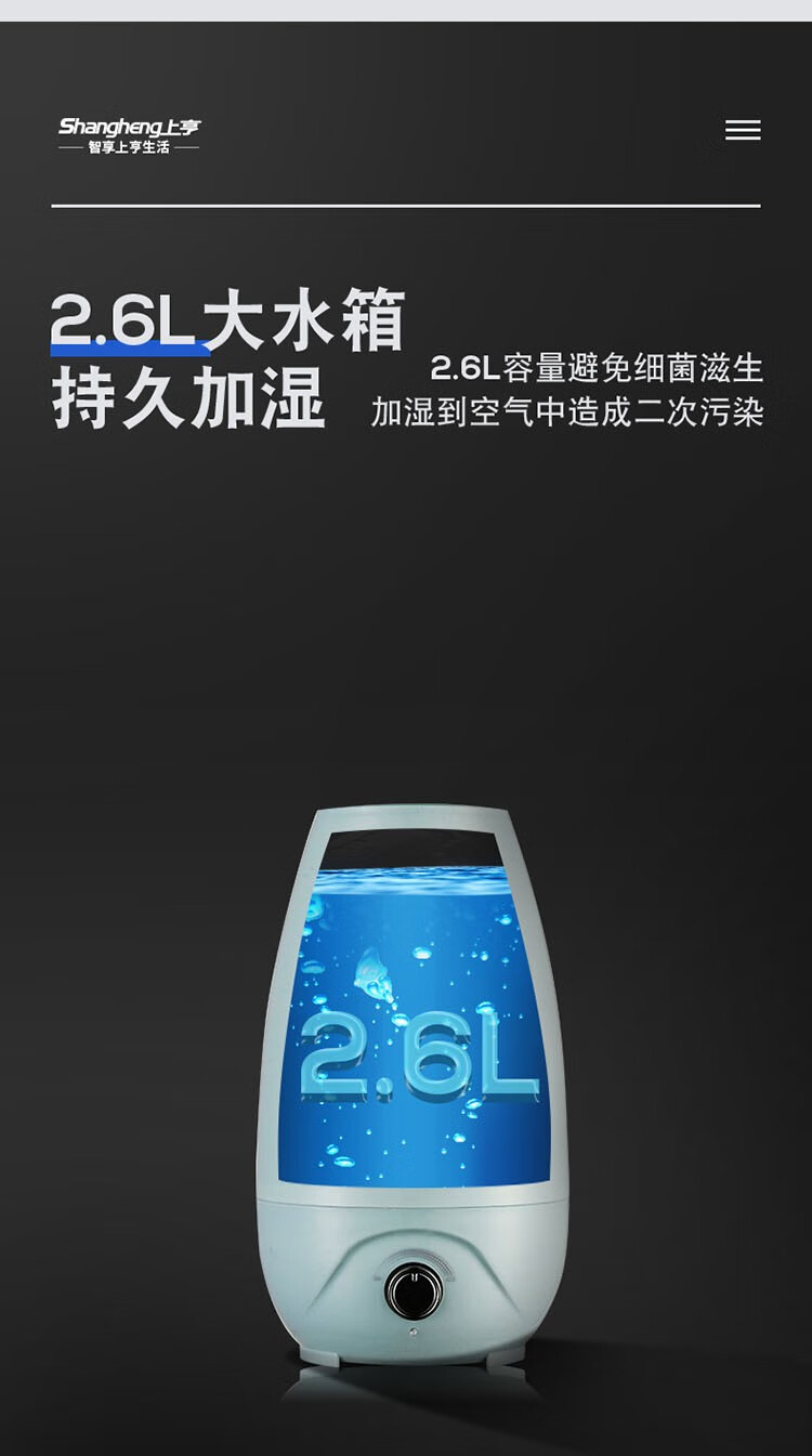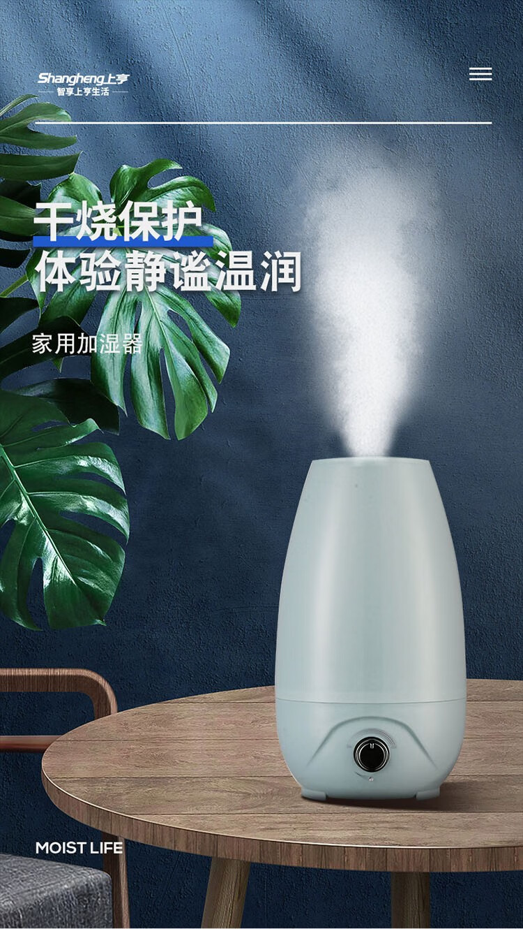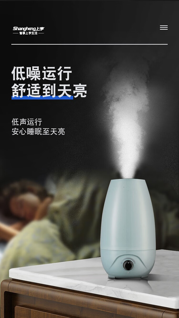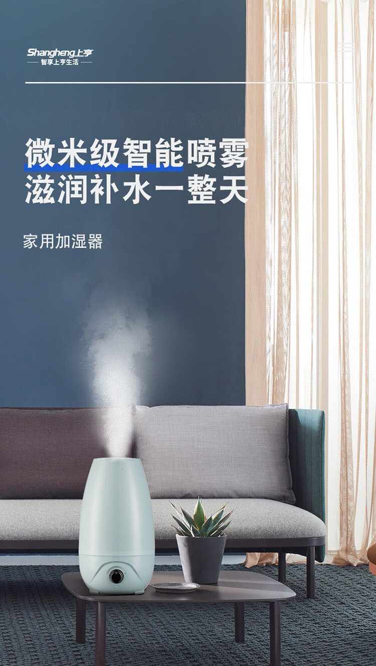 上亨(shangheng) SHZH-SHJ001加湿器卧室家用办公室大雾大容量孕妇婴儿小型净化空气低噪落地桌面香薰喷雾器 绿色【干烧保护 2.6L大容量】