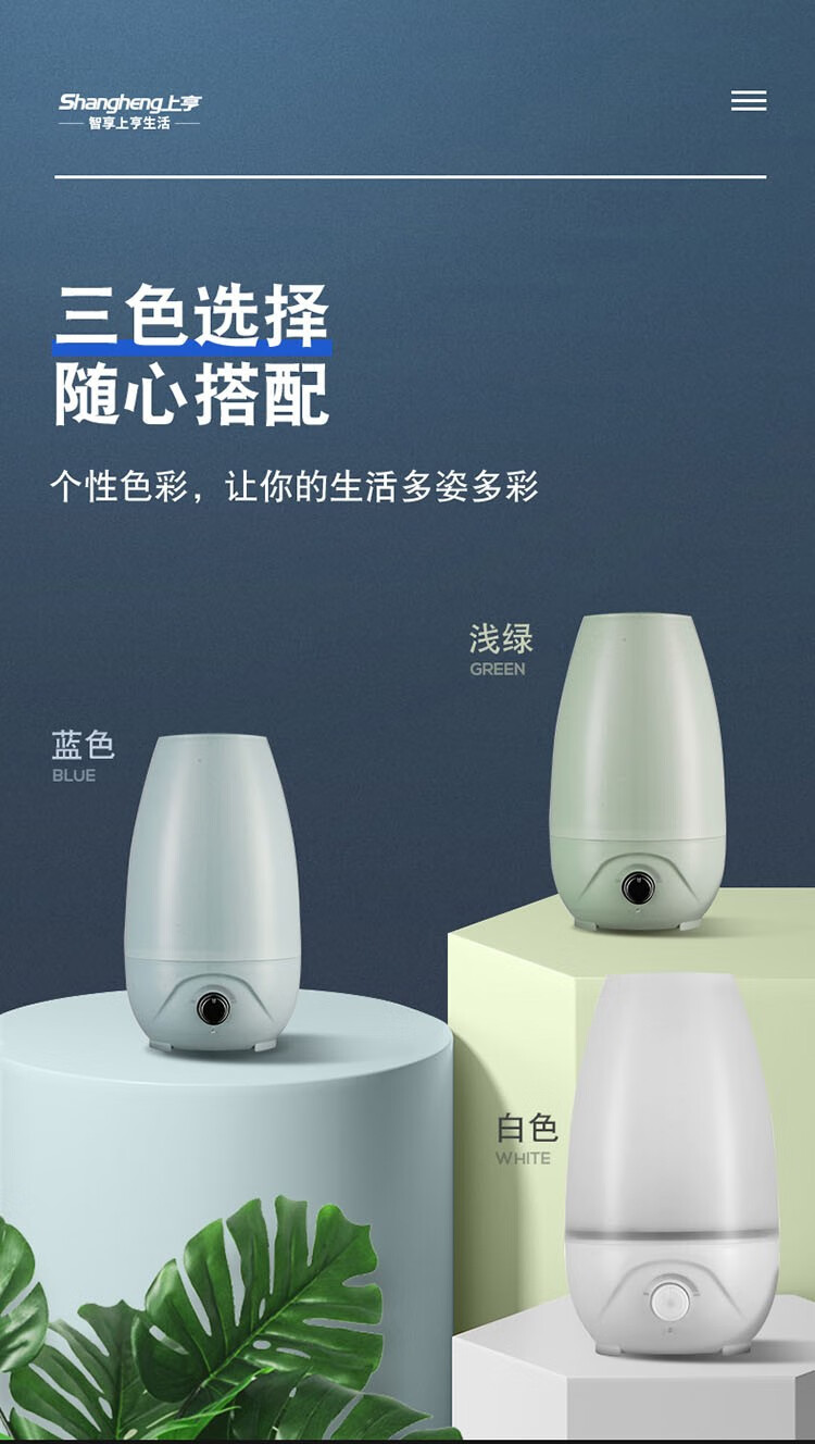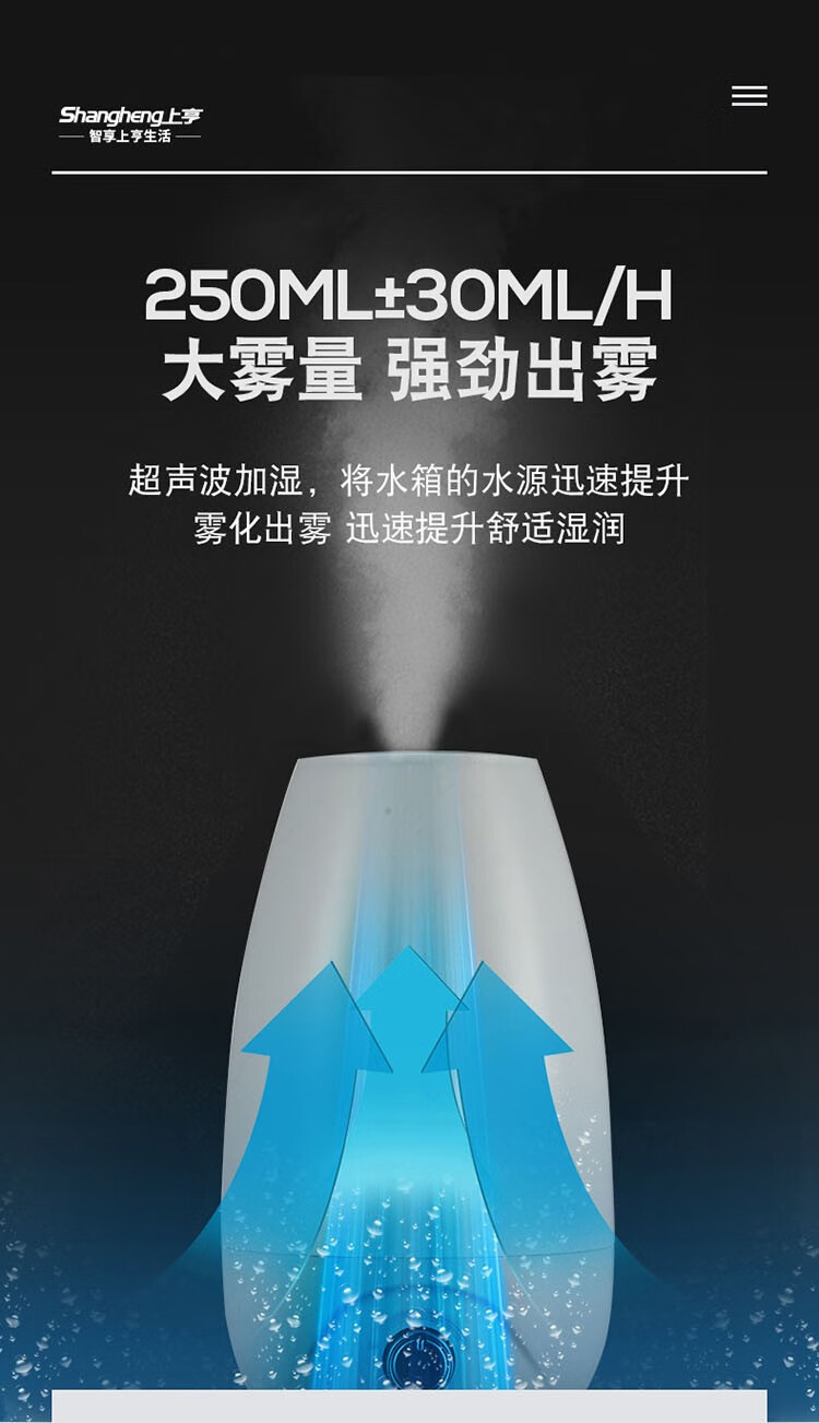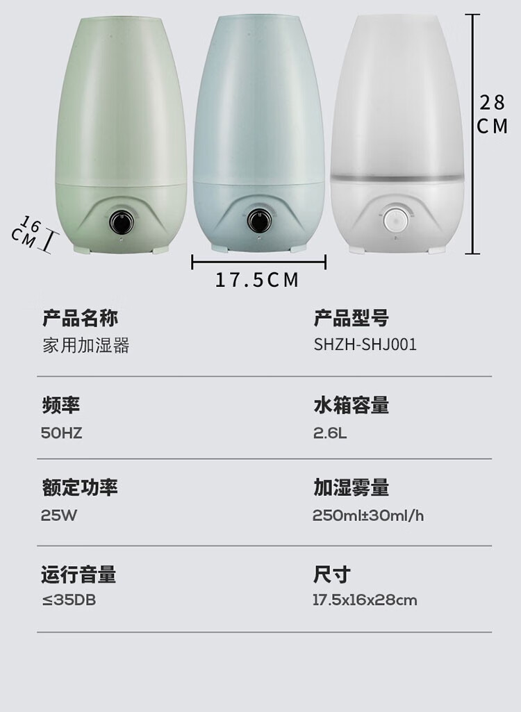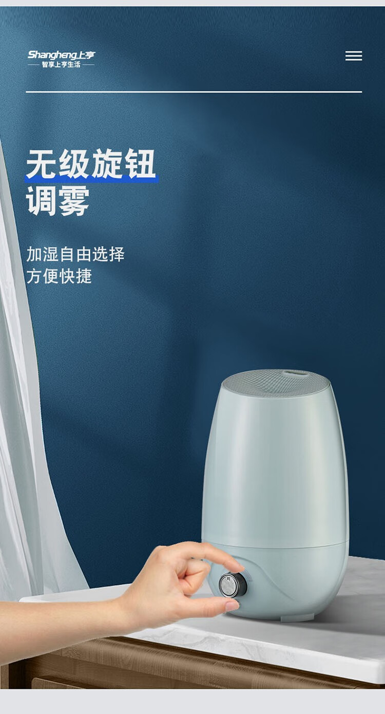上亨(shangheng) SHZH-SHJ001加湿器卧室家用办公室大雾大容量孕妇婴儿小型净化空气低噪落地桌面香薰喷雾器 绿色【干烧保护 2.6L大容量】
