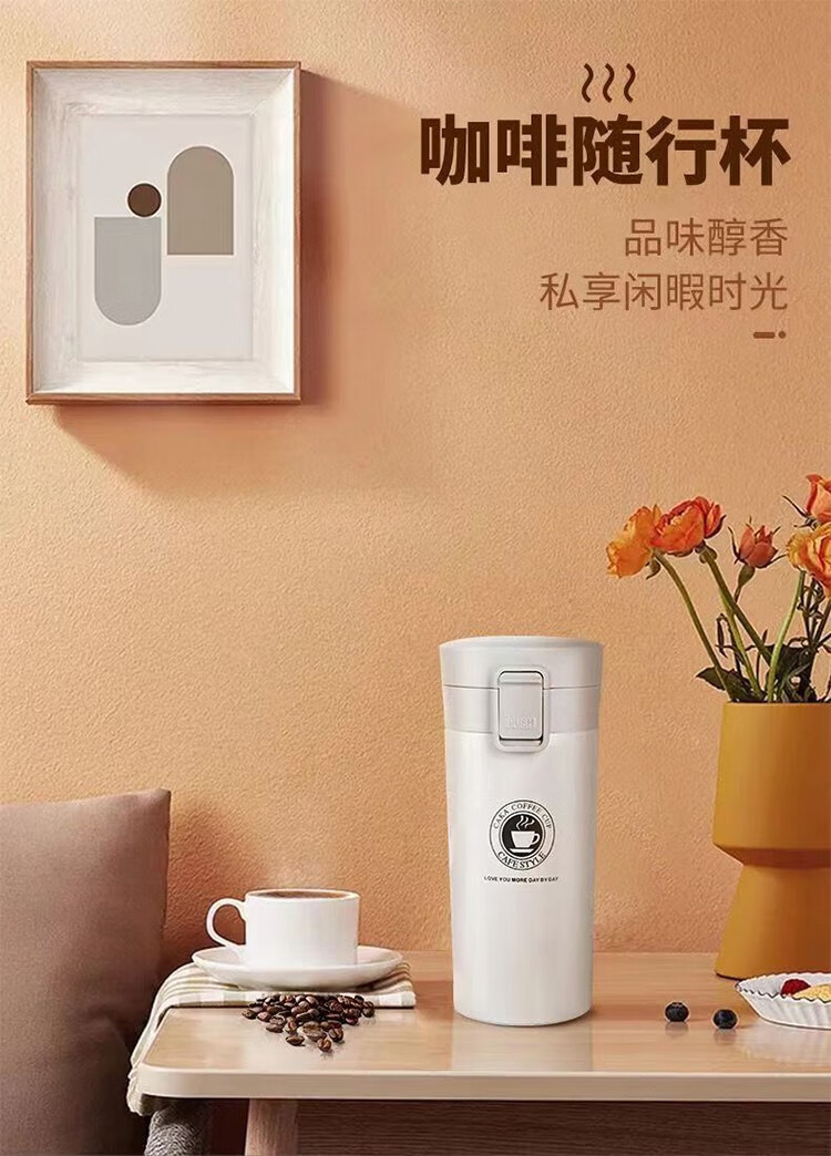 上亨(shangheng) SHZH-CFBD003保温杯男女成人随行咖啡杯旅行出差泡茶杯办公情侣学生喝水杯子 每天一杯好心情【素雅白380ML】