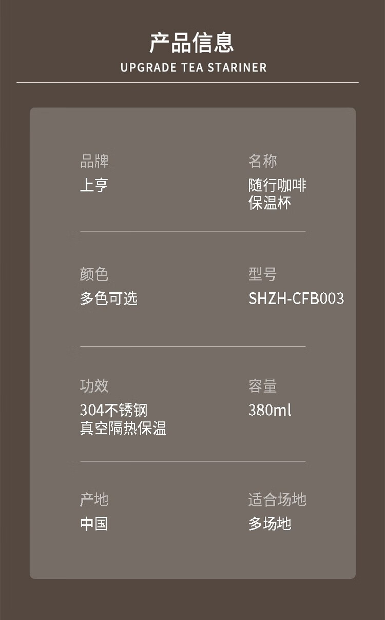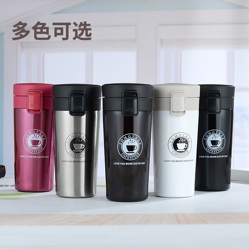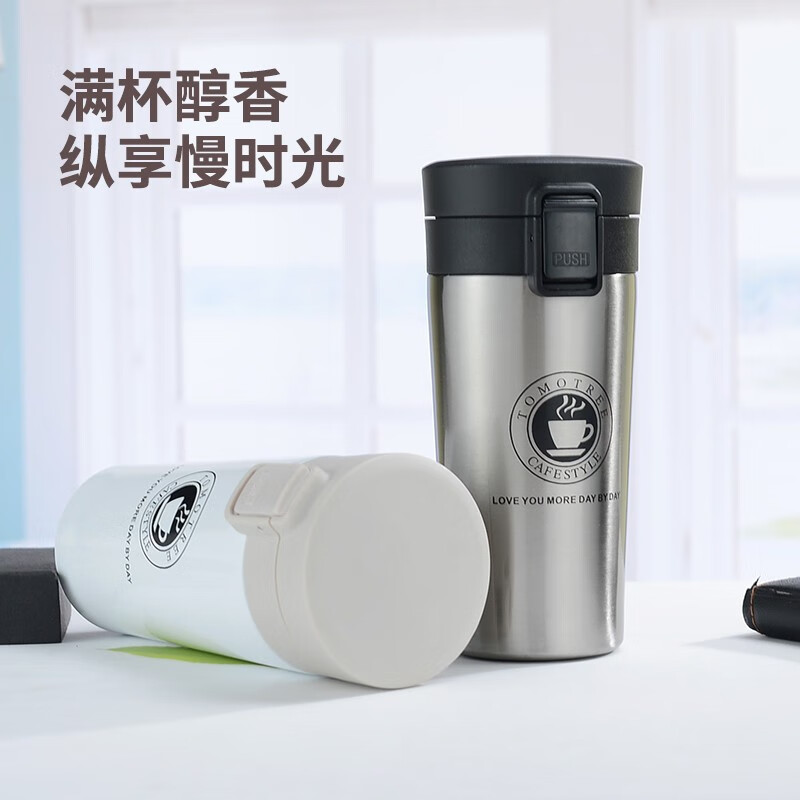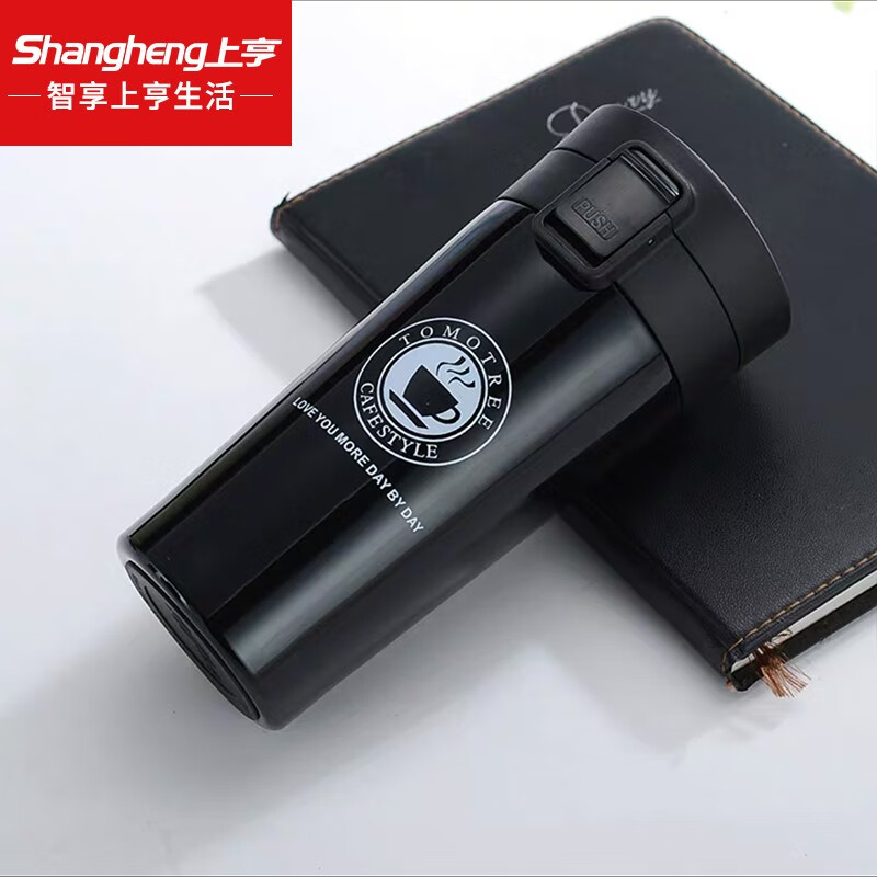 上亨(shangheng) 保温杯男女成人随行咖啡杯旅行出差泡茶杯办公情侣学生喝水杯子 每天一杯好心情【经典黑380ML】SHZH-CFBD003