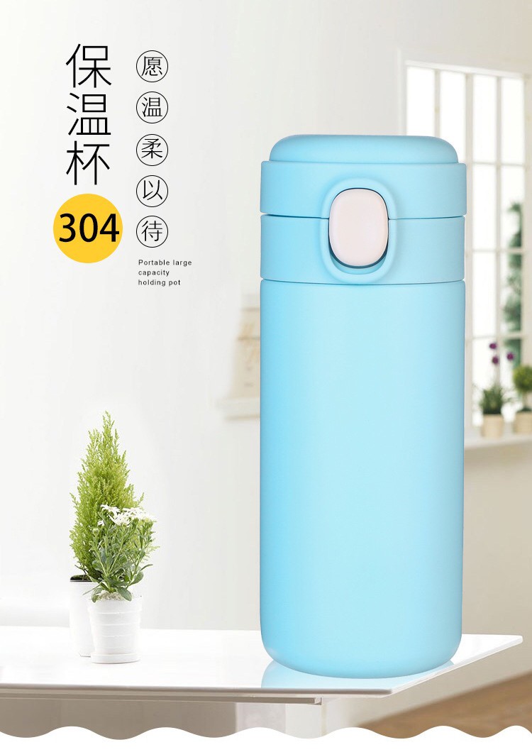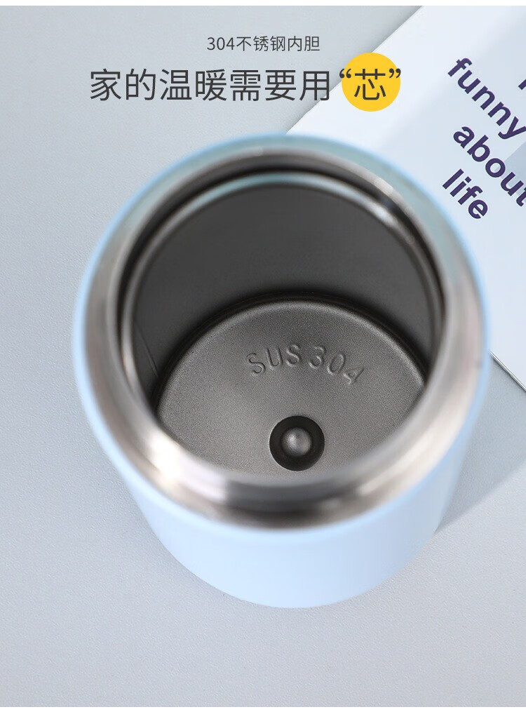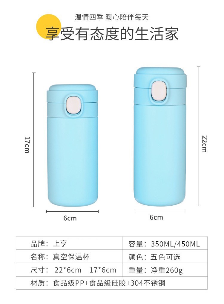 上亨(shangheng) 保温杯男女款成年人学生大容量便捷带盖喝水杯子304不锈钢豌豆杯 简约美【450ML天空蓝】SHZH-CFBD004
