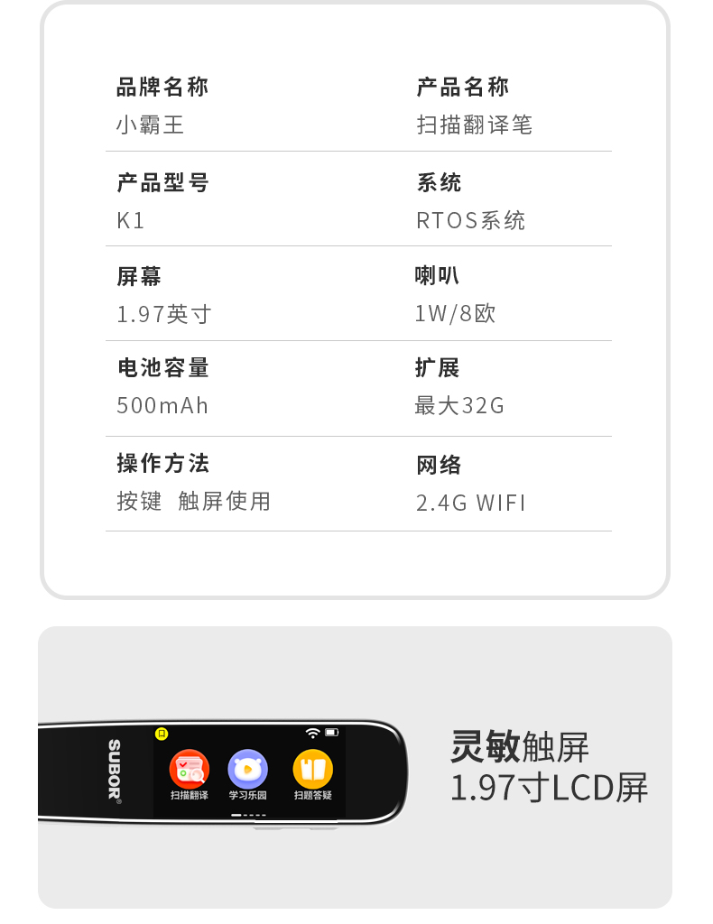小霸王智能扫描翻译笔k1