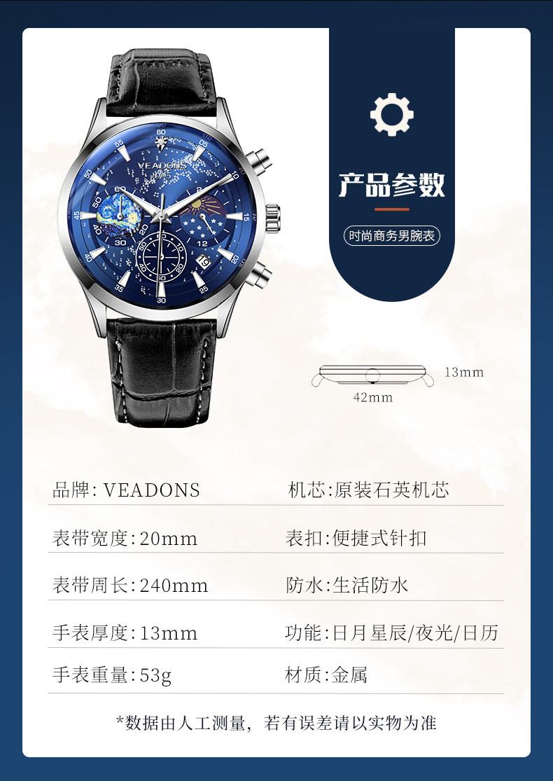 威顿(VEADONS)星辰大海手表男士石英表5079