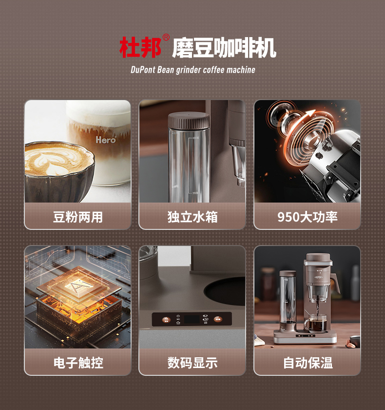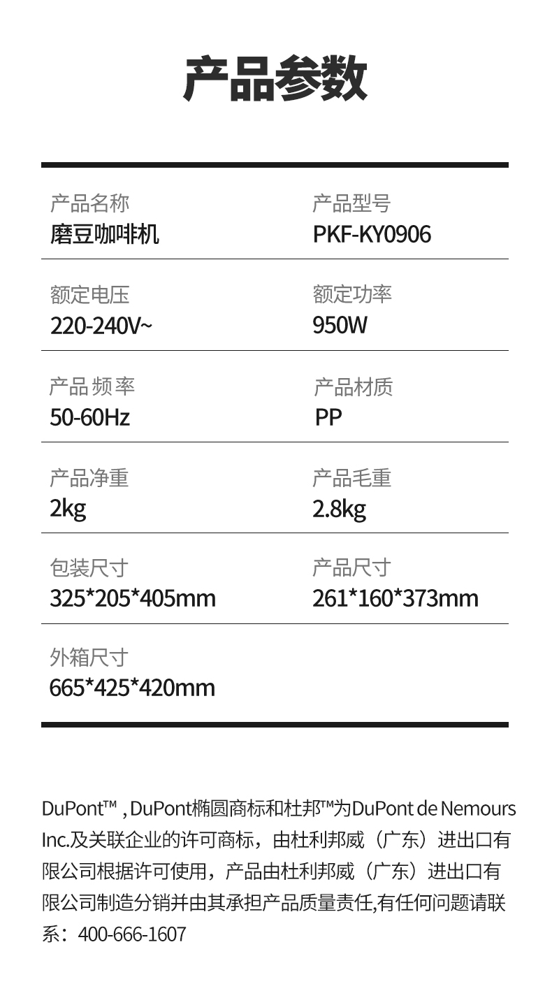 杜邦DUPONT磨豆咖啡机PKF-KY0906一键触控自动手冲