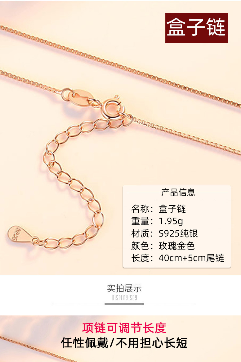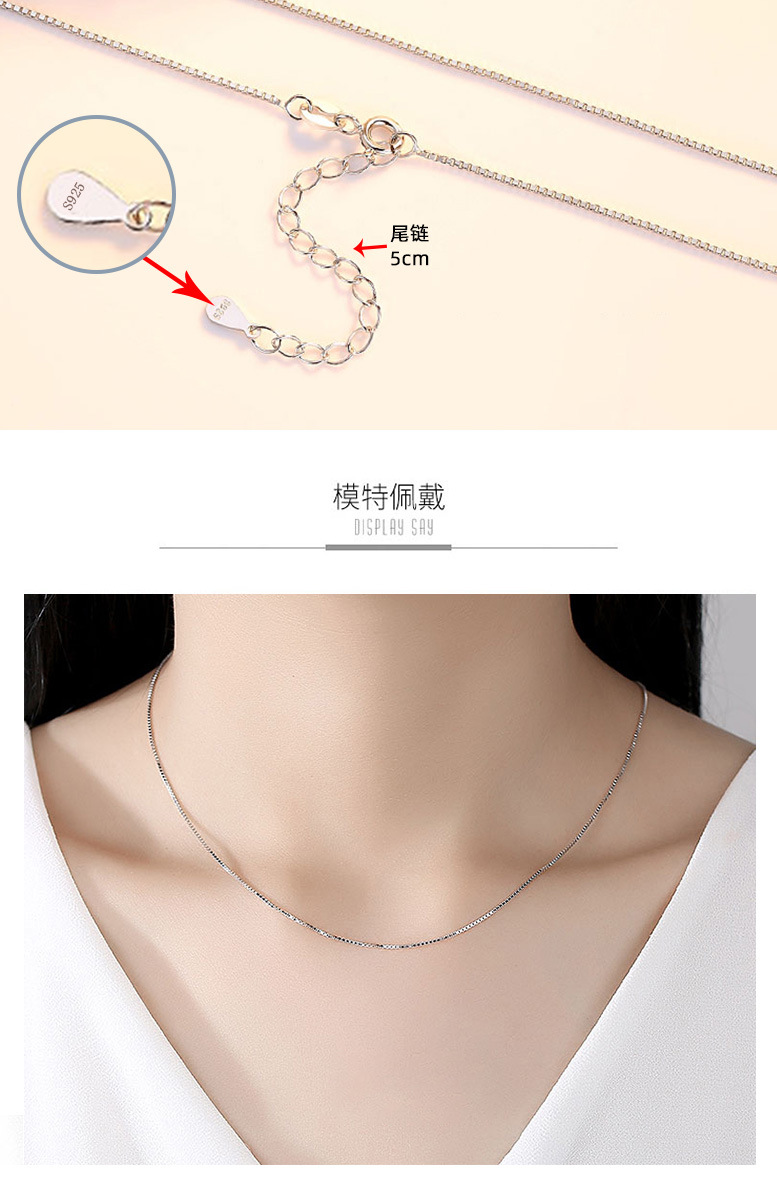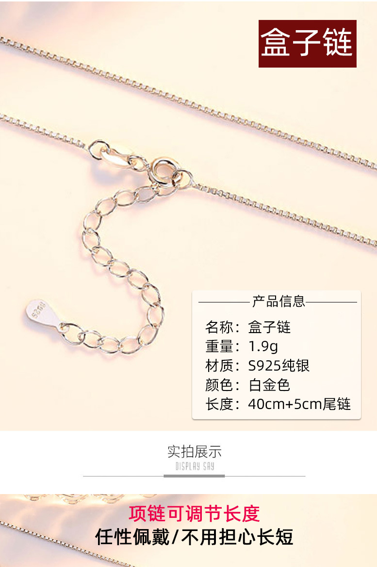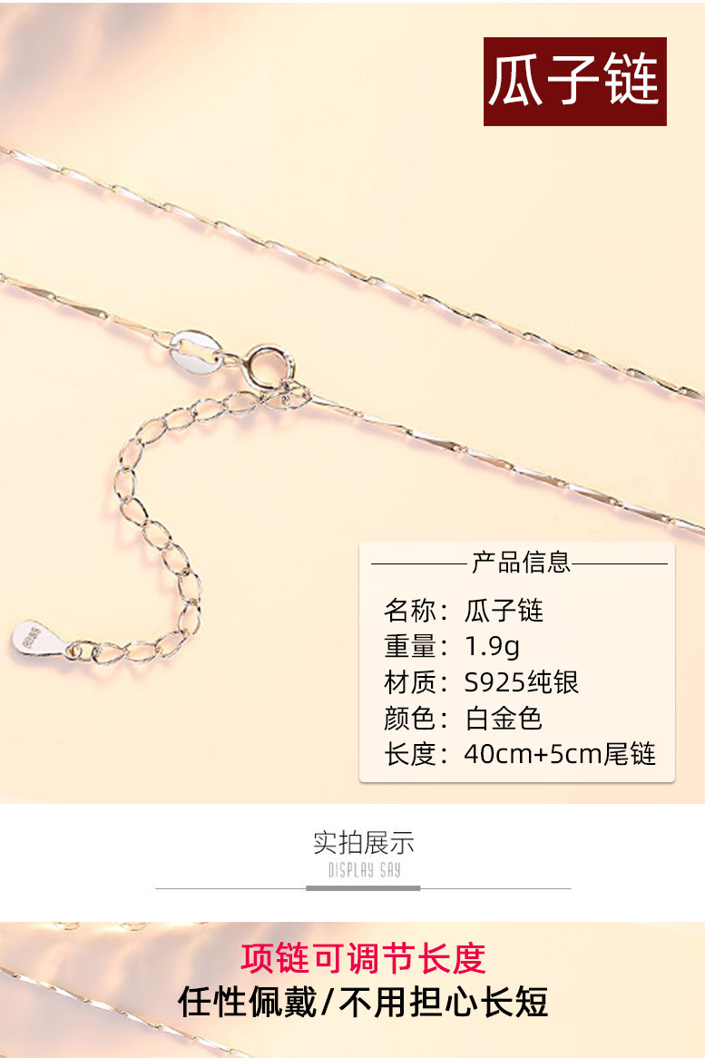 S925纯银项链瓜子链细款S925纯银盒子瓜子裸链单链子吊坠40+5延长链