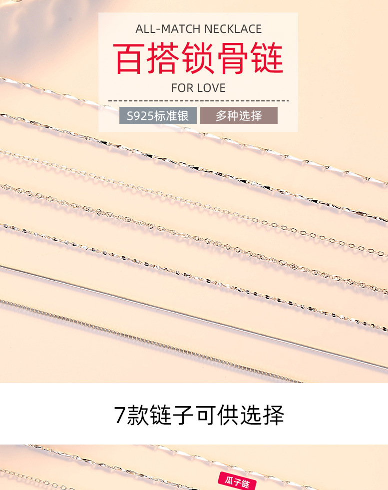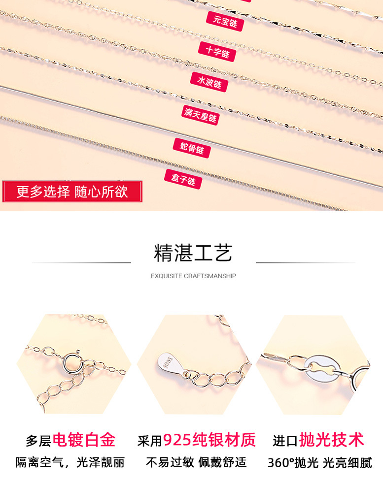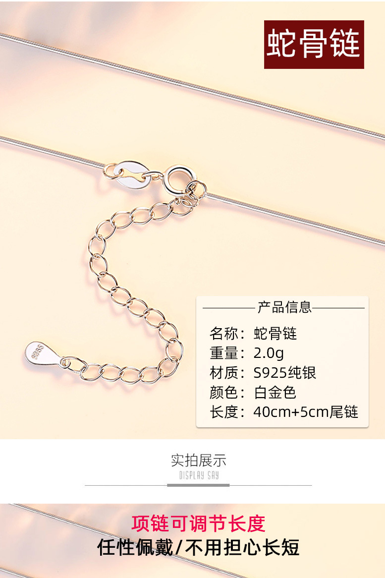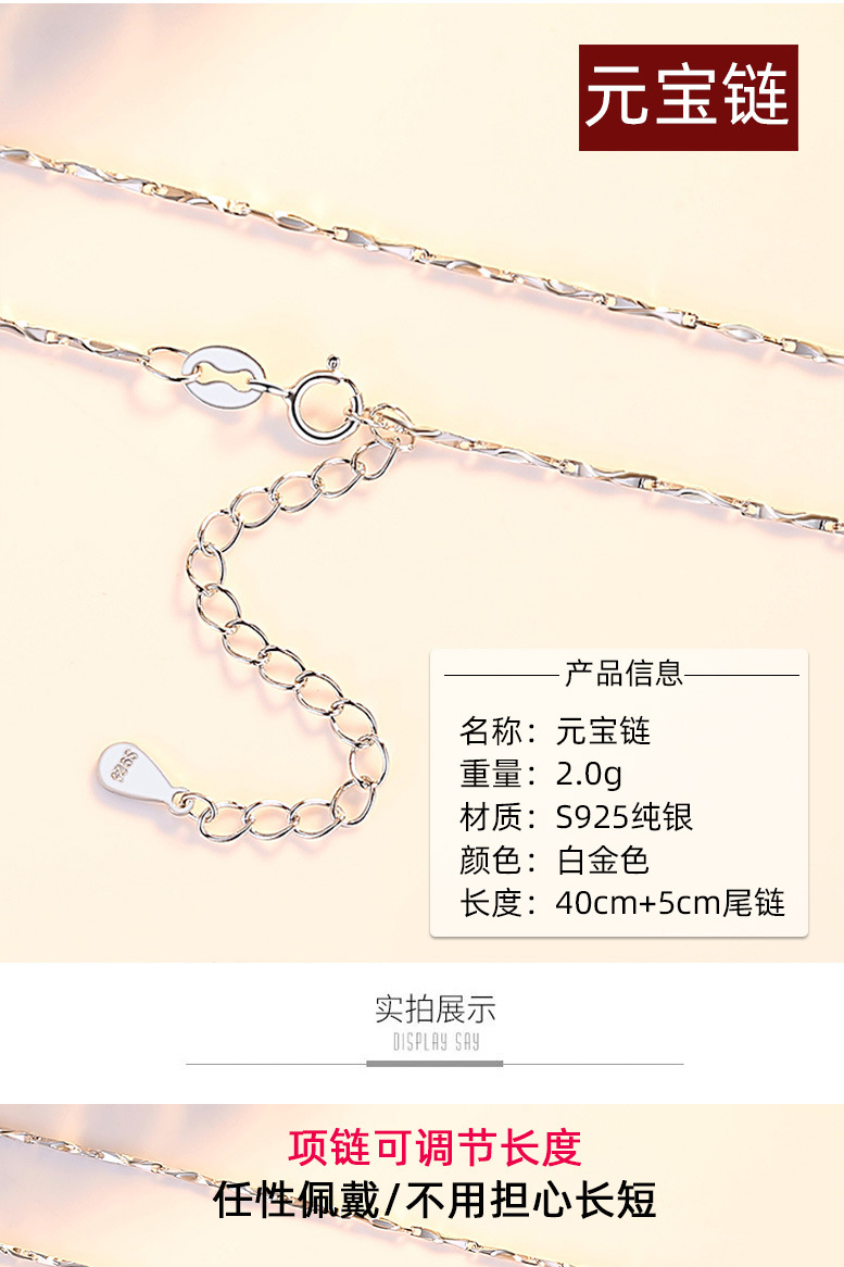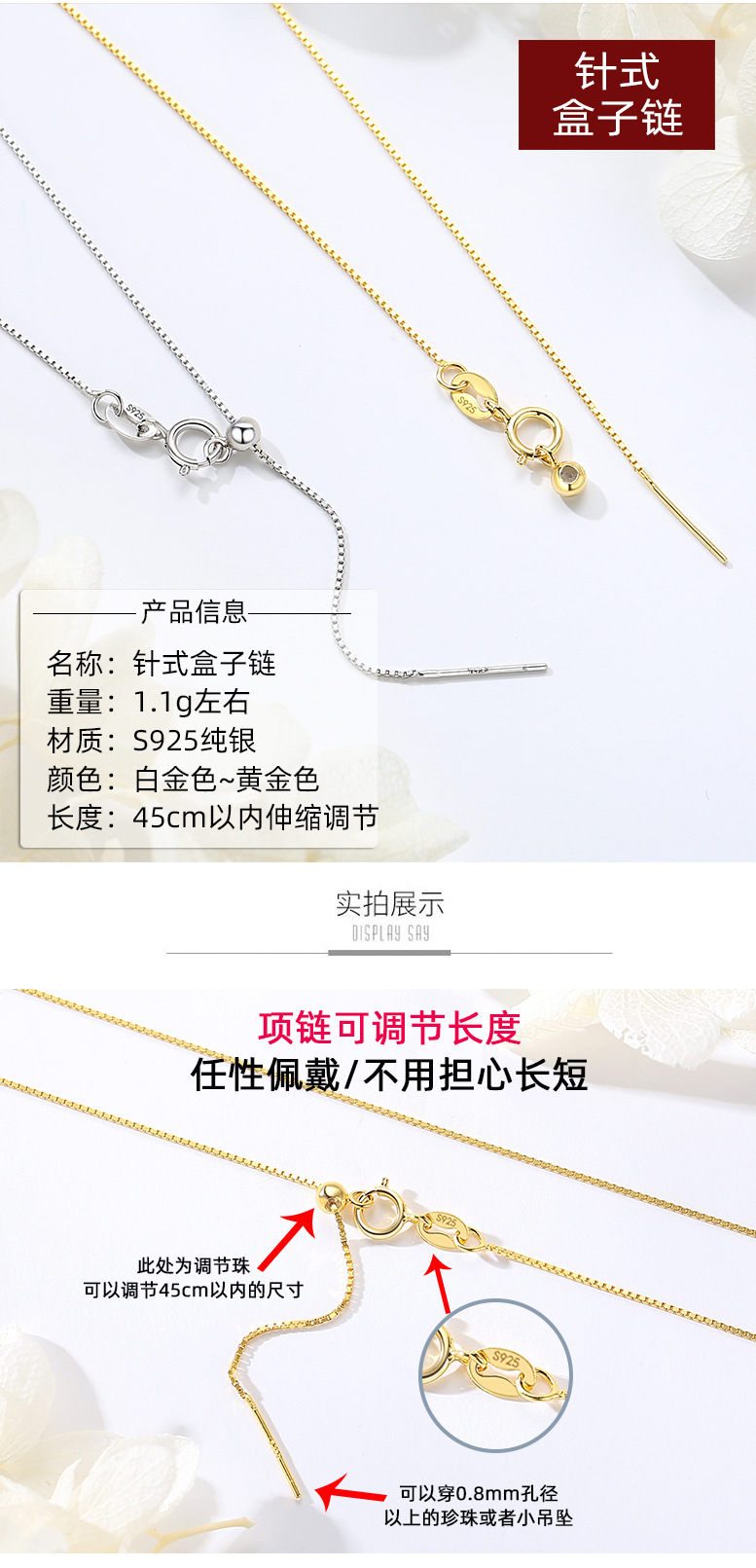 S925纯银项链瓜子链细款S925纯银盒子瓜子裸链单链子吊坠40+5延长链