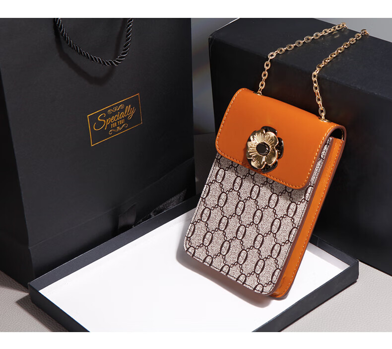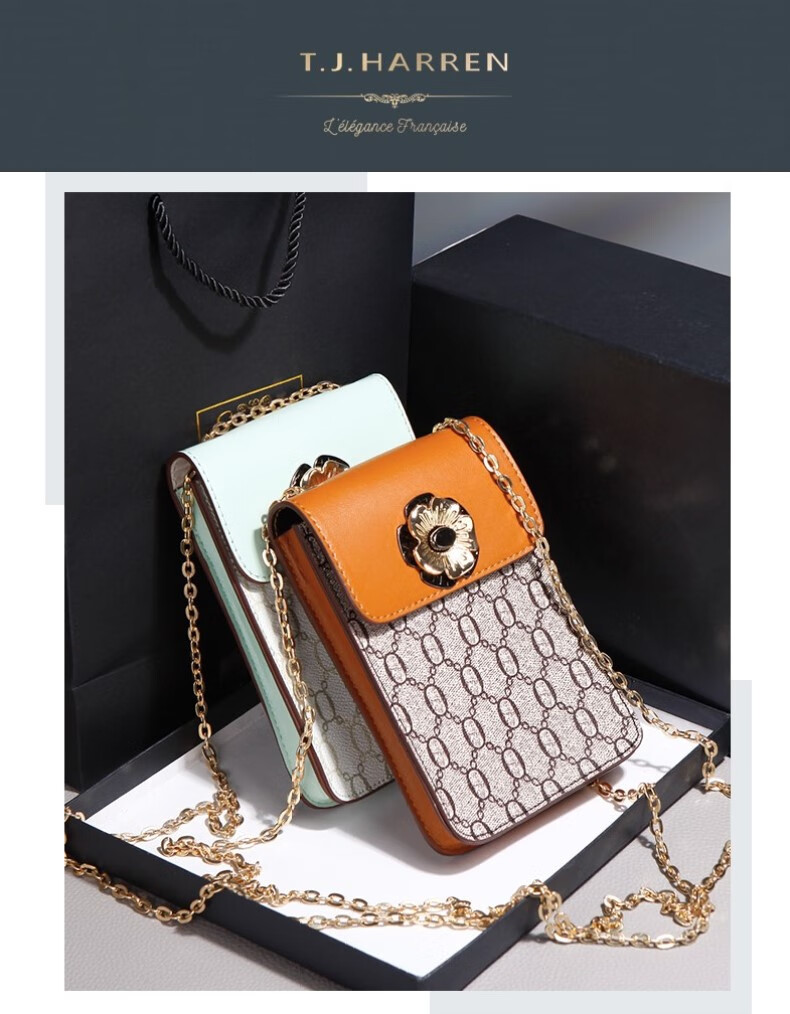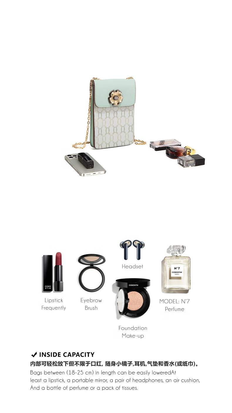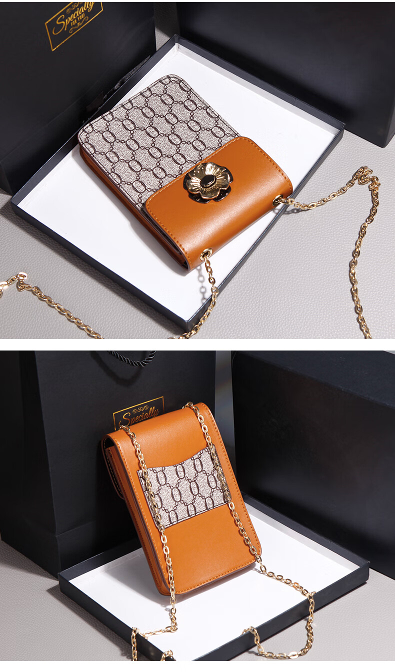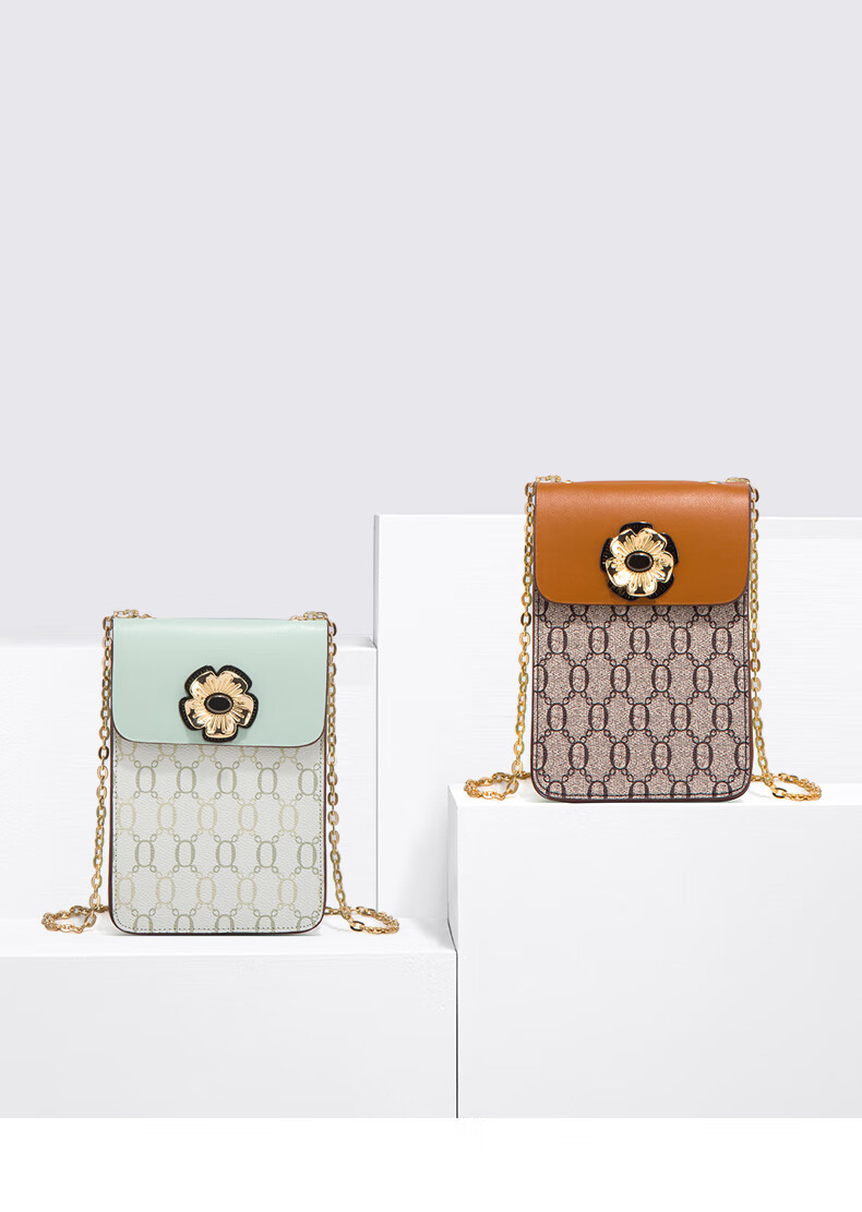 . 磁吸锁扣,金色链条肩带,简练轻便;