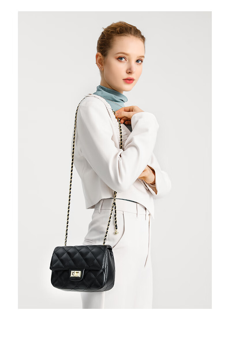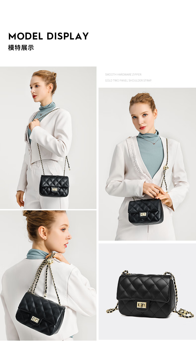 · 锁扣防盗,金球点缀,柔和真皮质感;