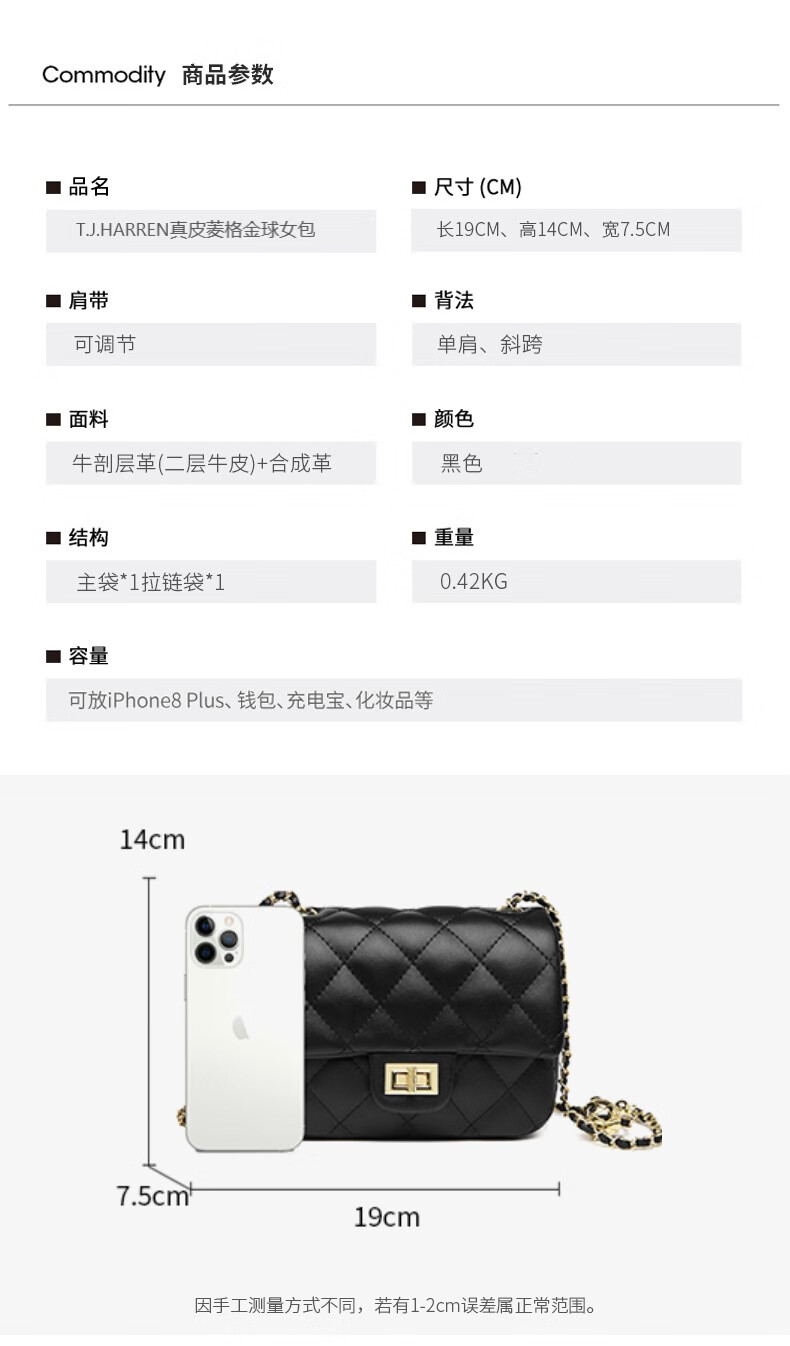 T.J.HARREN蒂捷海伦真皮菱格金球女包TJ8818礼盒版