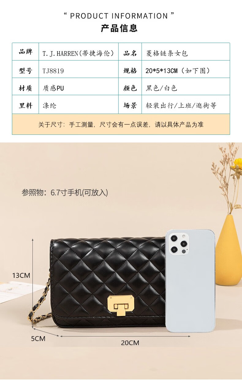 T.J.HARREN通勤菱格链条女包TJ8819礼盒版