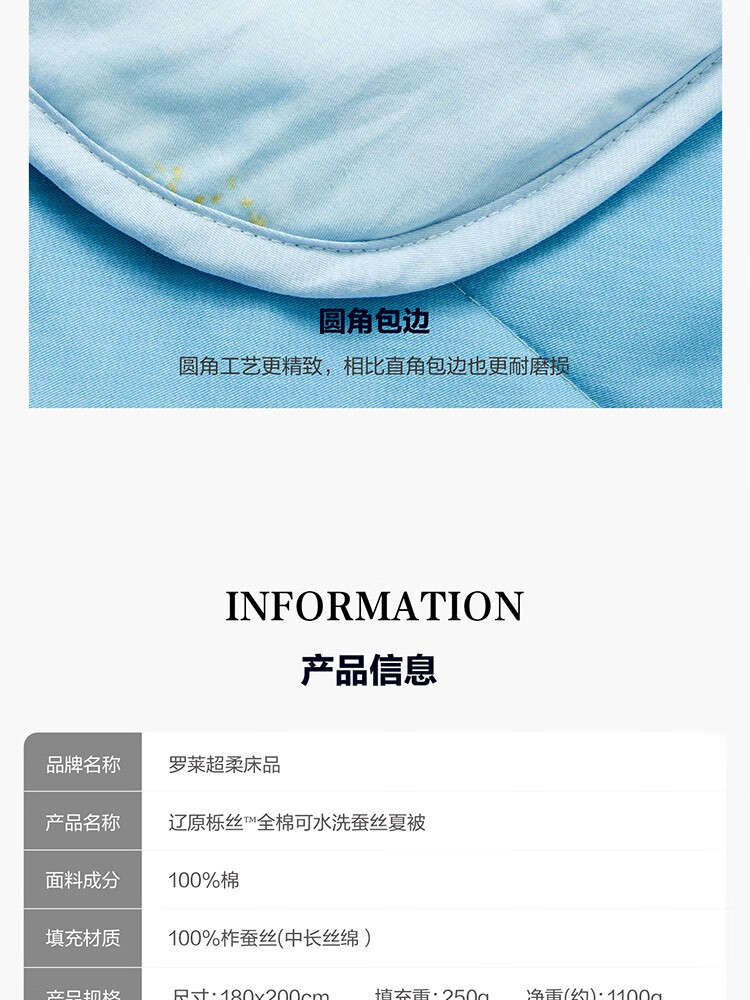 罗莱团购 辽原栎丝™全棉可水洗蚕丝夏被
