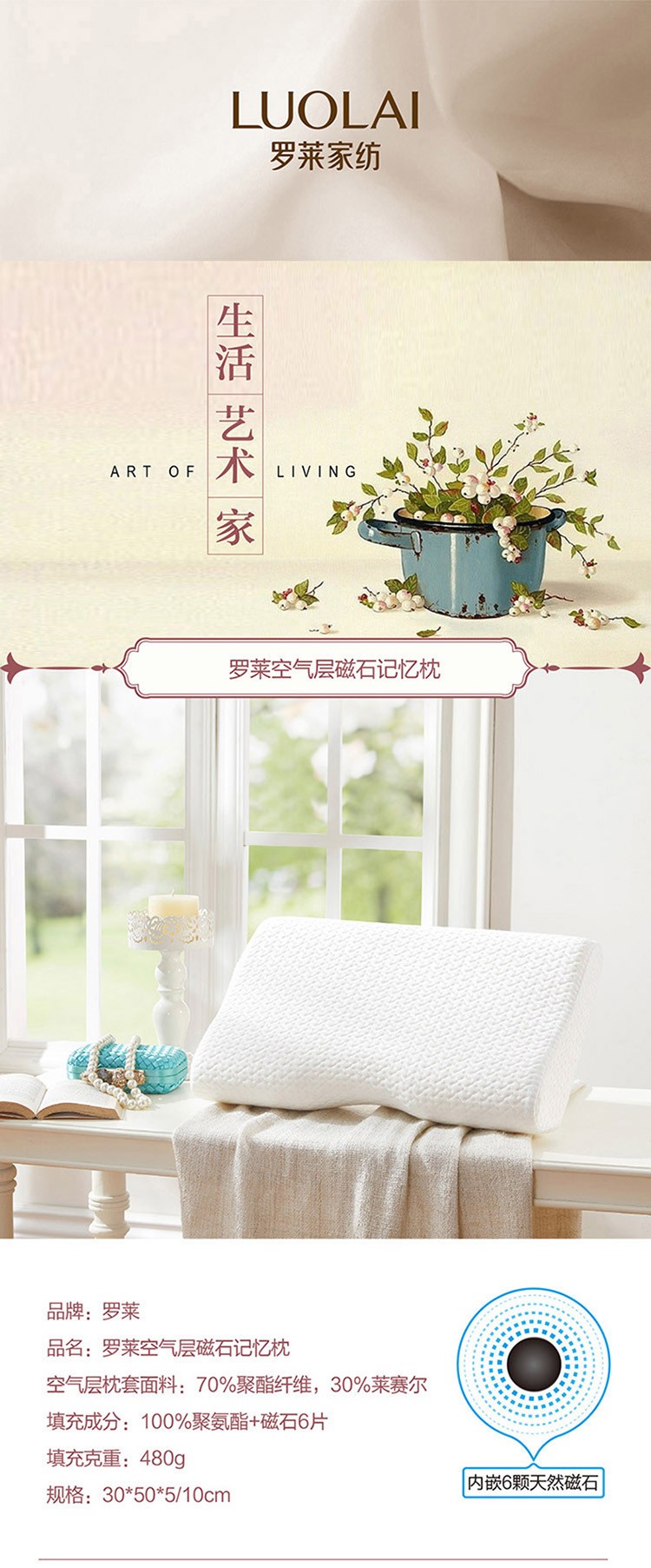 罗莱团购 空气层磁石记忆枕