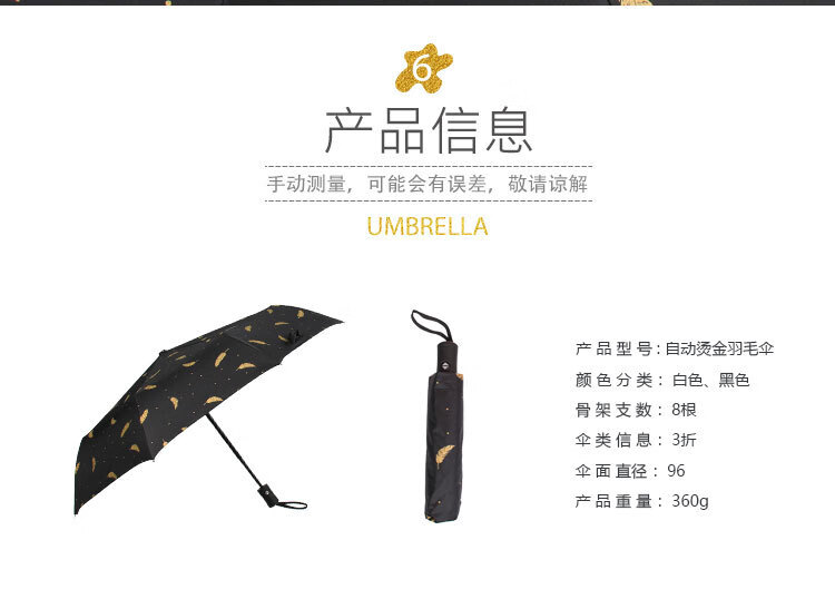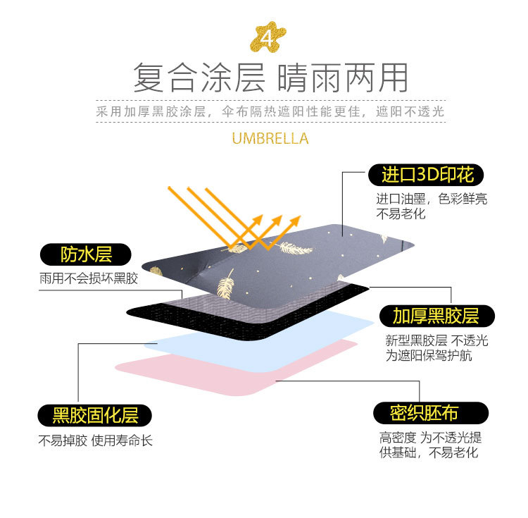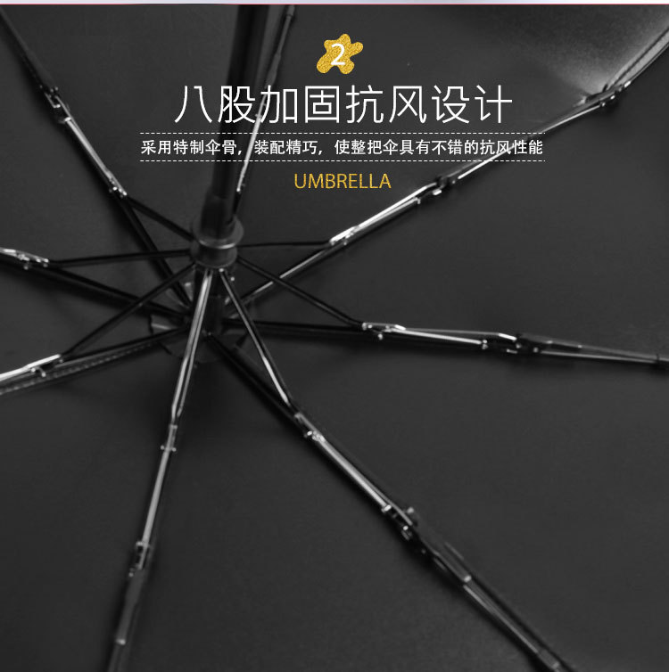 伞布过胶:纳米黑胶 伞骨:八骨黑钢