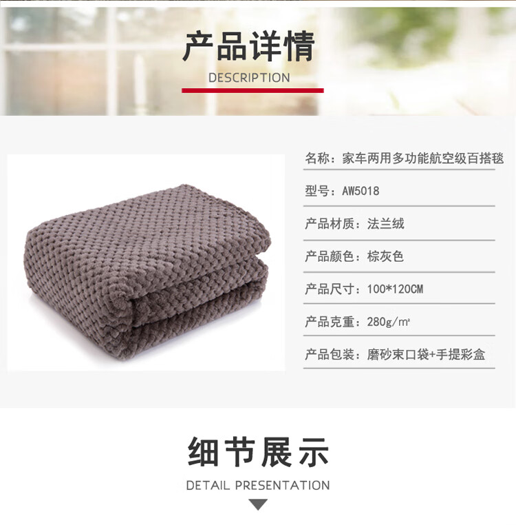 3、适合于家居、车载、办公空调盖毯或保暖毯;