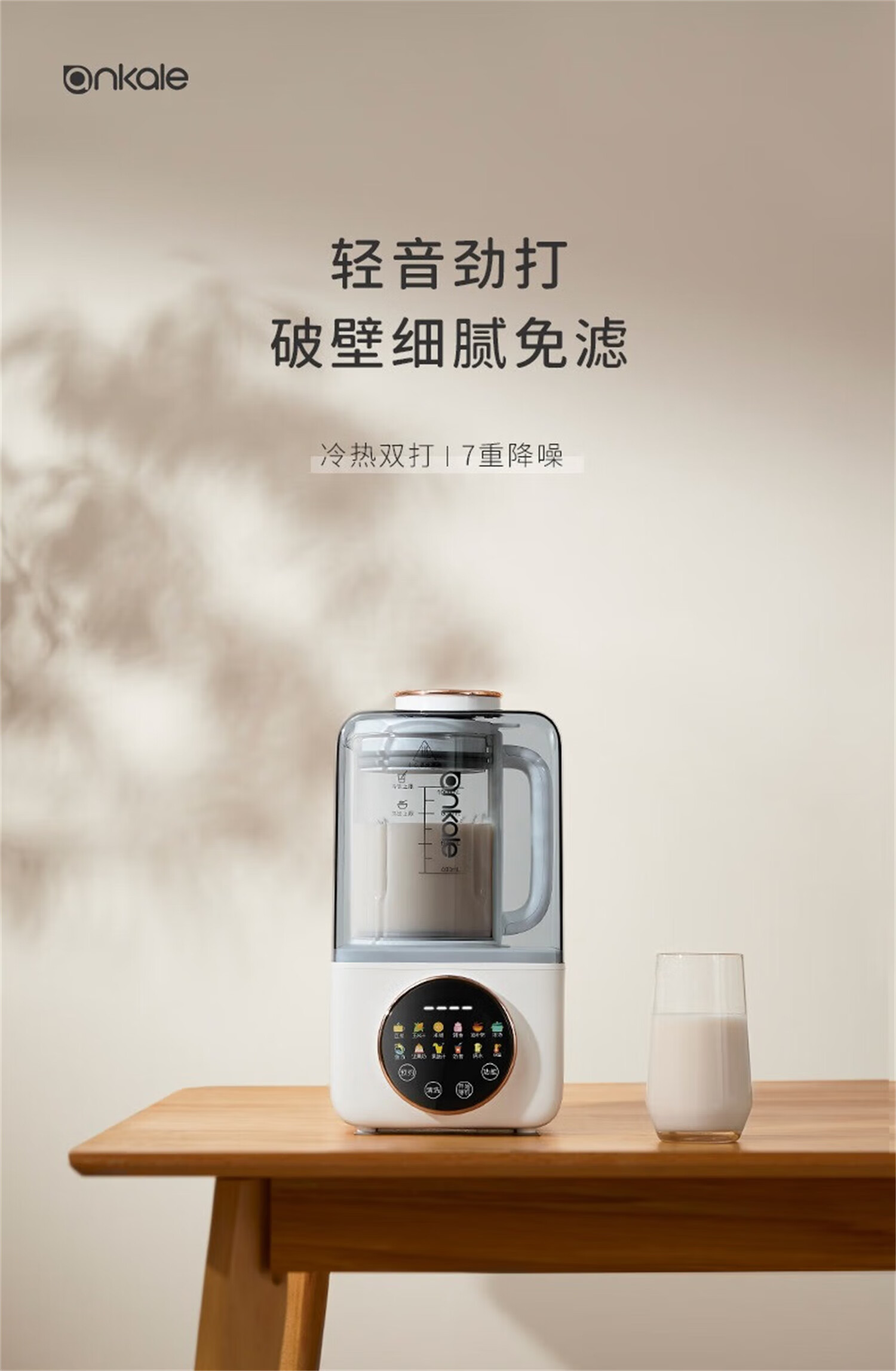 ankale破壁机 豆浆机 迷你小型家用免洗 五谷杂粮全自动免煮 破壁豆浆机 优雅白1000mL