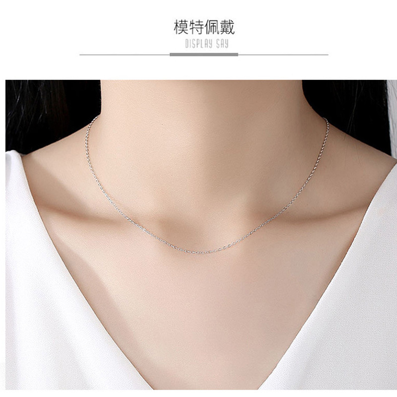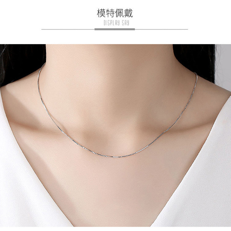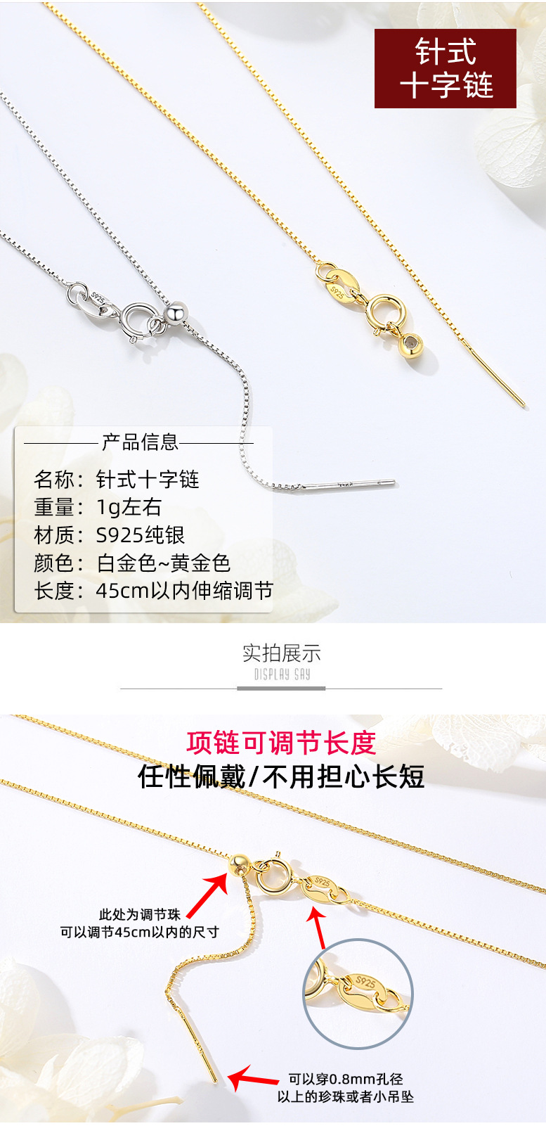 S925纯银项链链针式盒子链十字链穿珍珠小孔吊坠可调节锁骨链批发