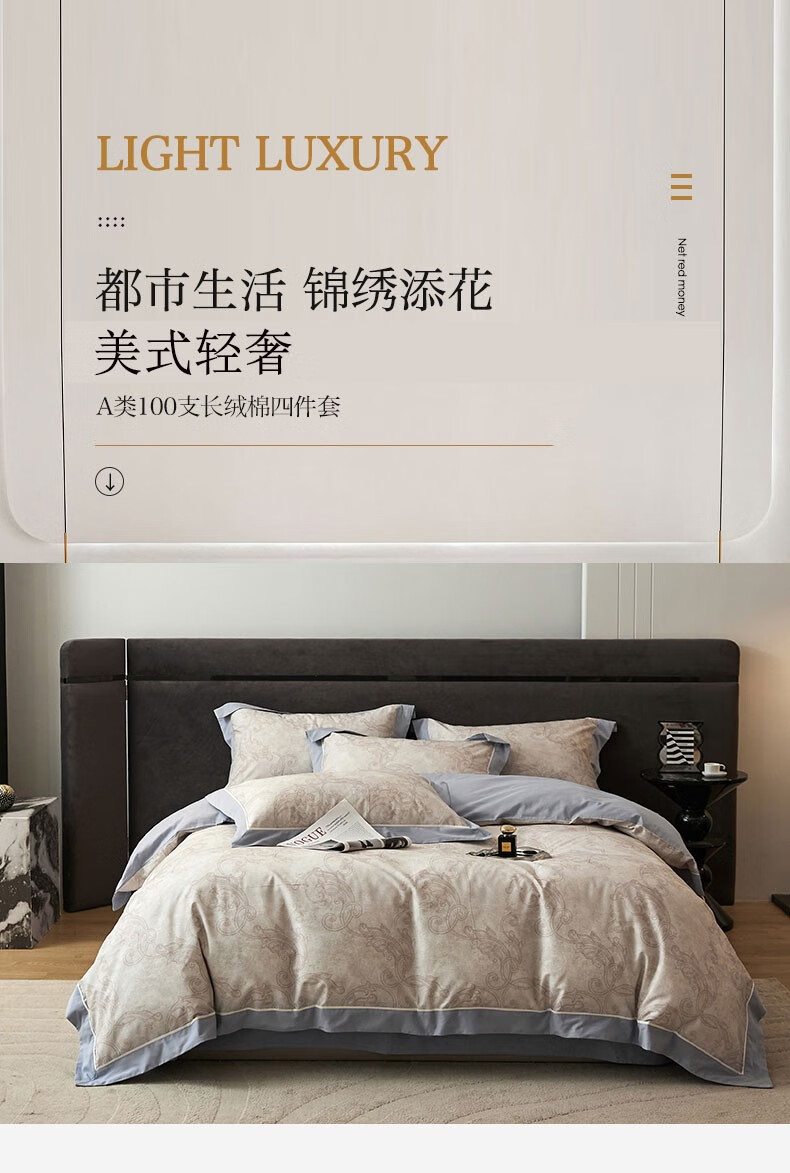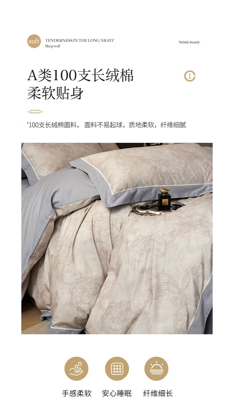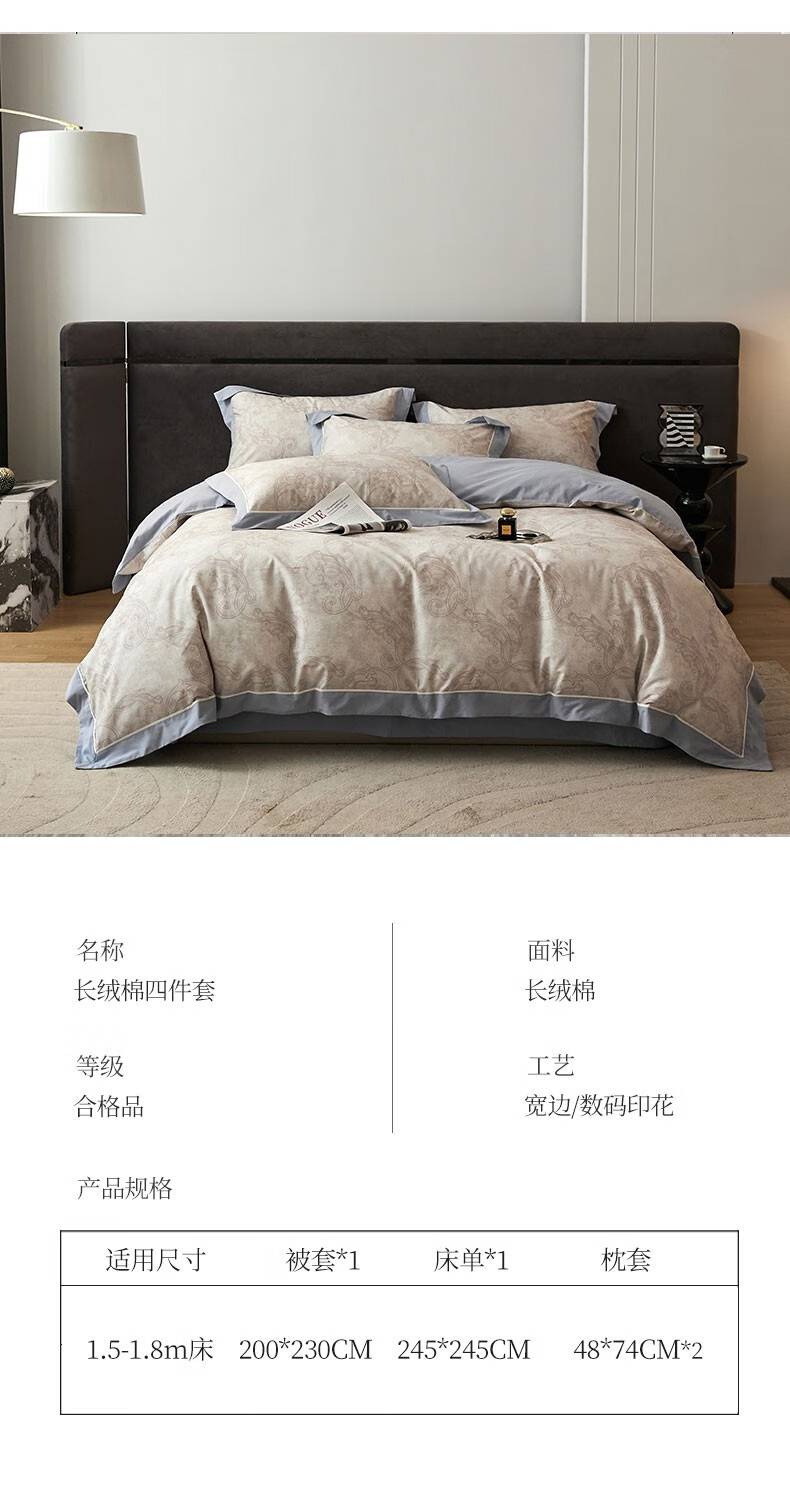 百丽安娜(Belle Anna)100支长绒棉数码美式磨毛四件套(劳伦斯)床上用品套件