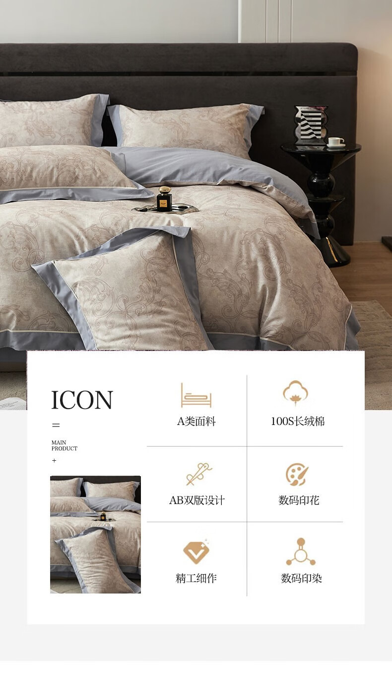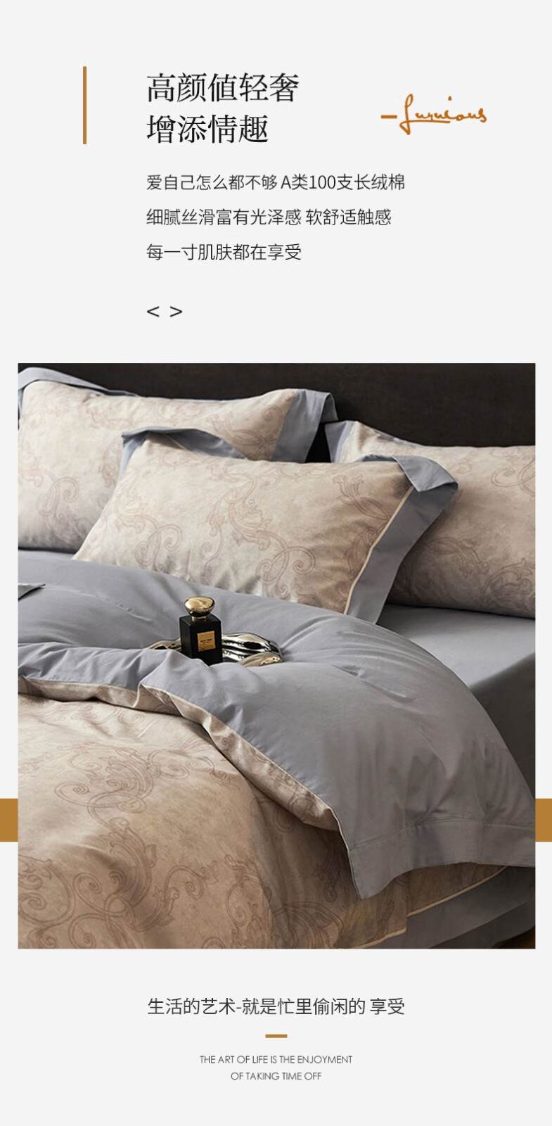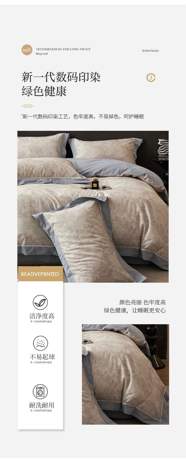 百丽安娜(Belle Anna)100支长绒棉数码美式磨毛四件套(劳伦斯)床上用品套件