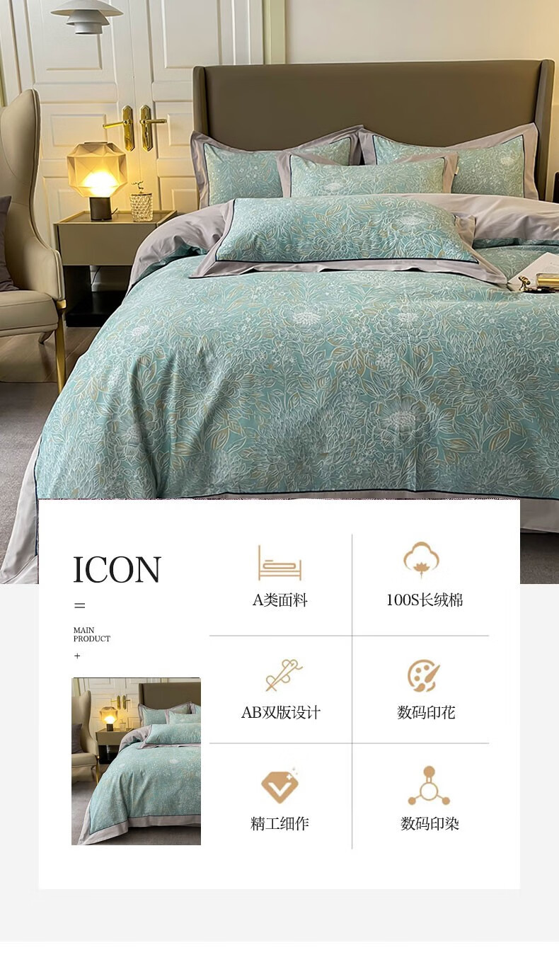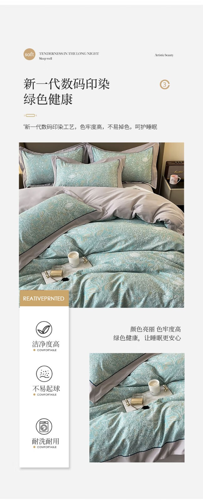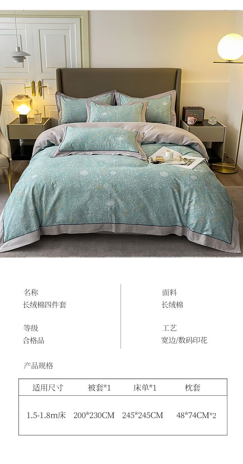 百丽安娜(Belle Anna)100支长绒棉数码美式磨毛四件套(西雅图)床上用品套件