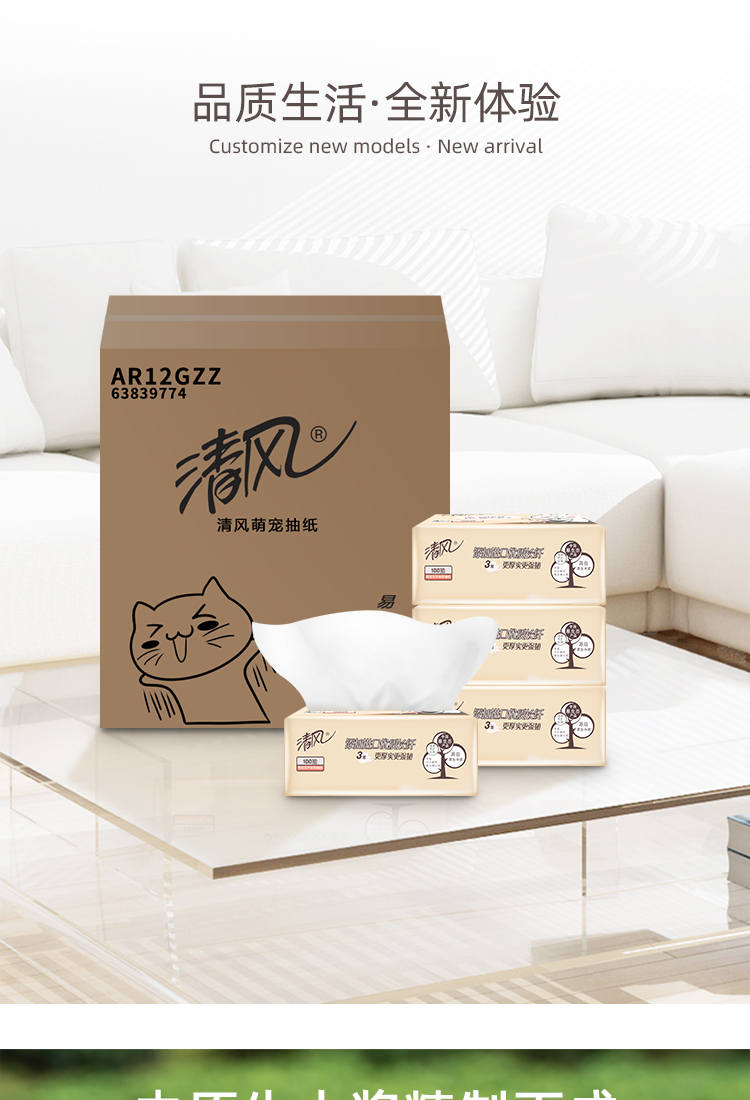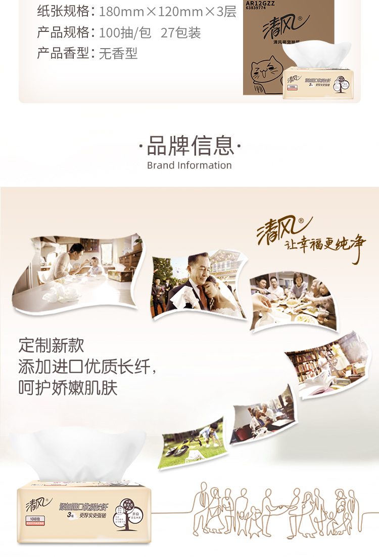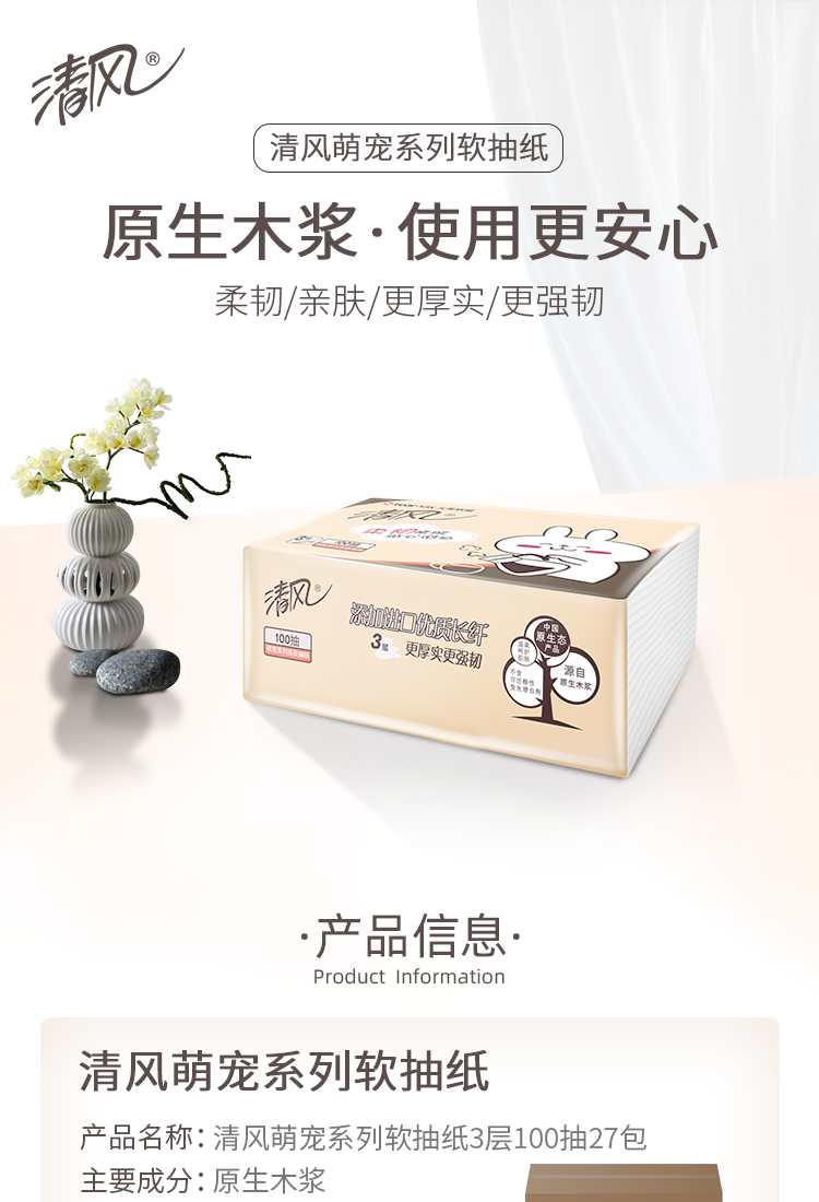 清风萌宠系列亲肤抽纸27小包(100抽)