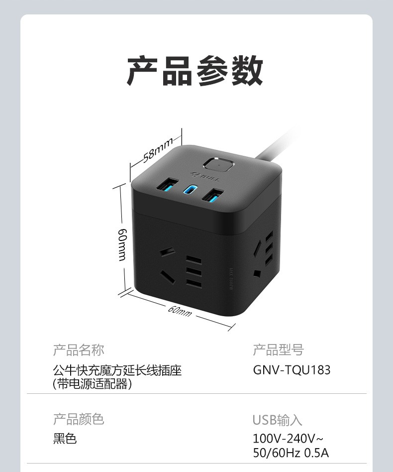 【公牛GNV-TQU183】公牛 GNV-TQU183 公牛(BULL) 插座 智能USB插座 插排 充电器