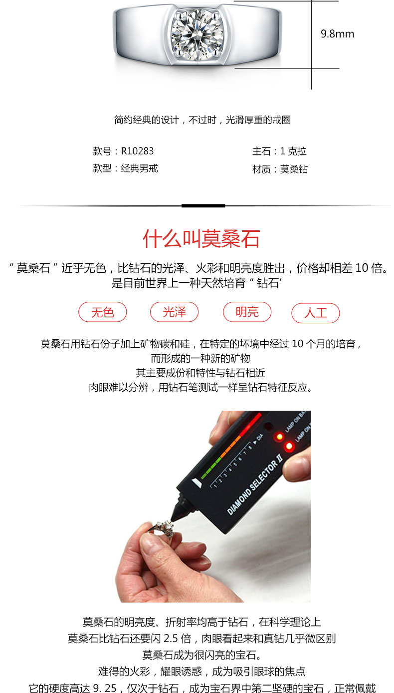 中国珠宝经典莫桑钻男戒R10283
