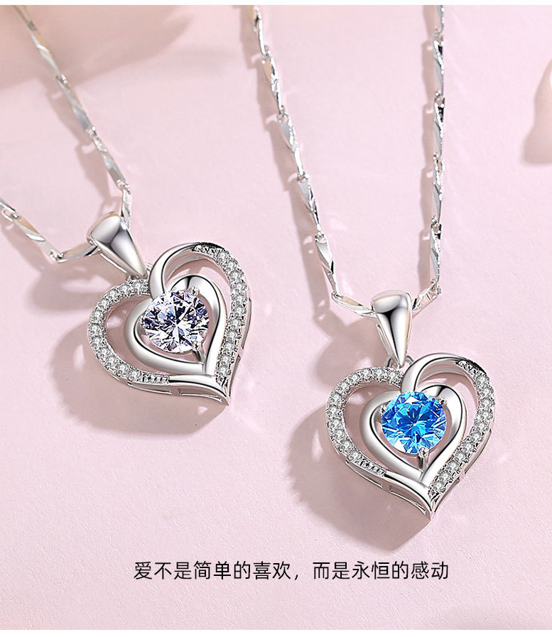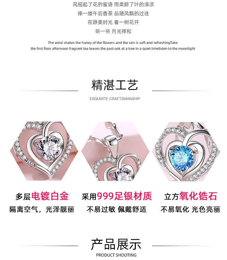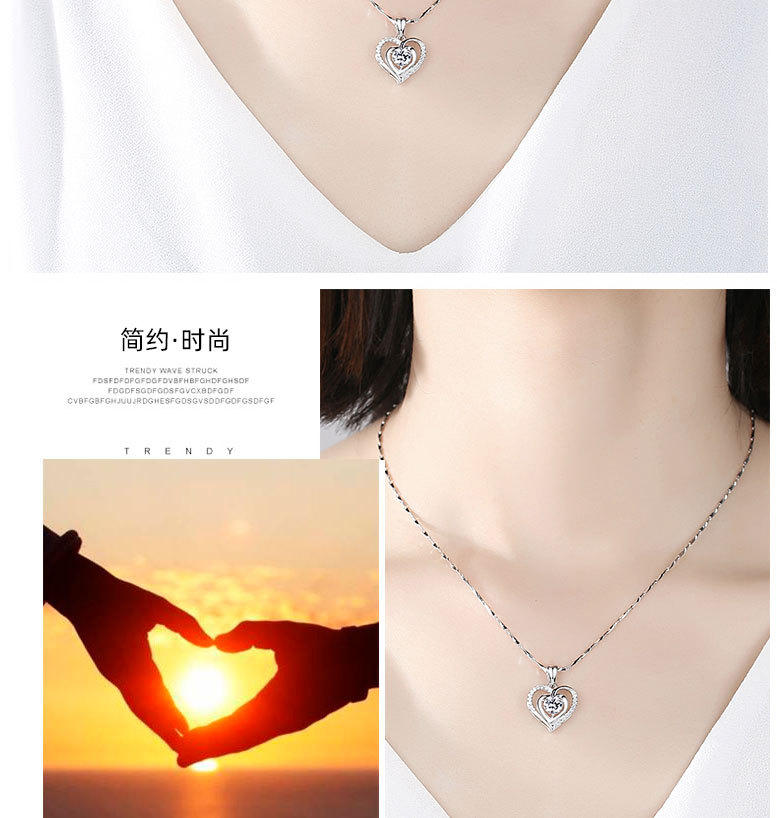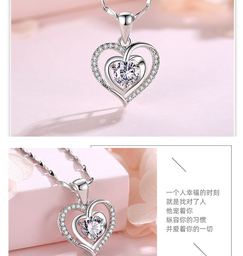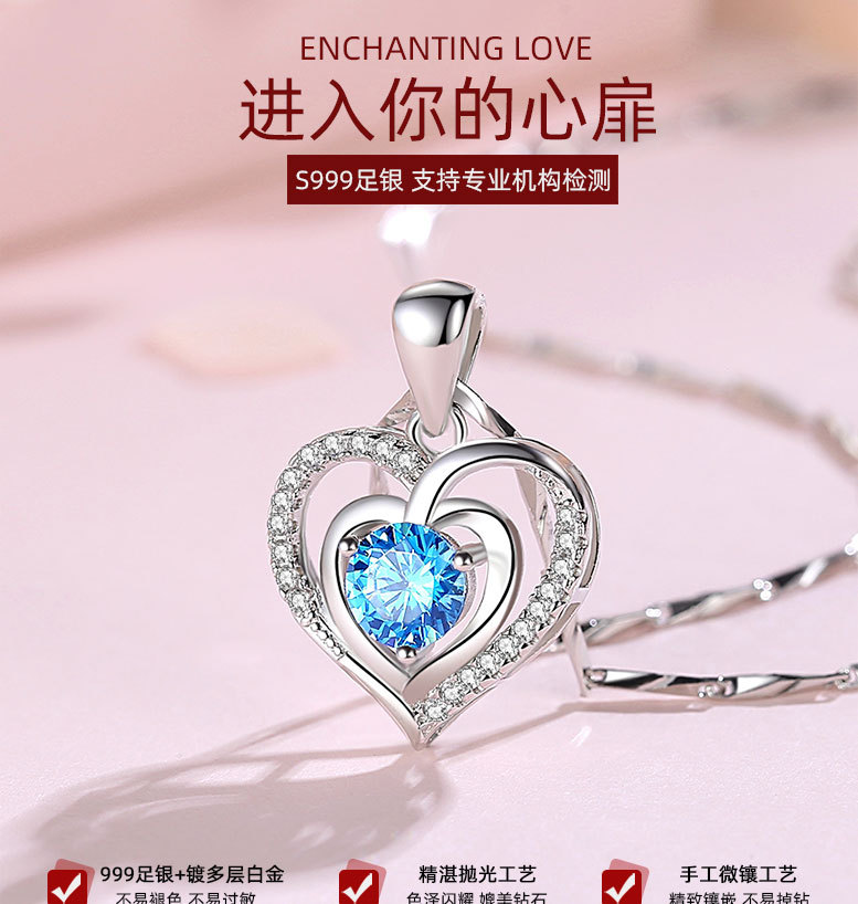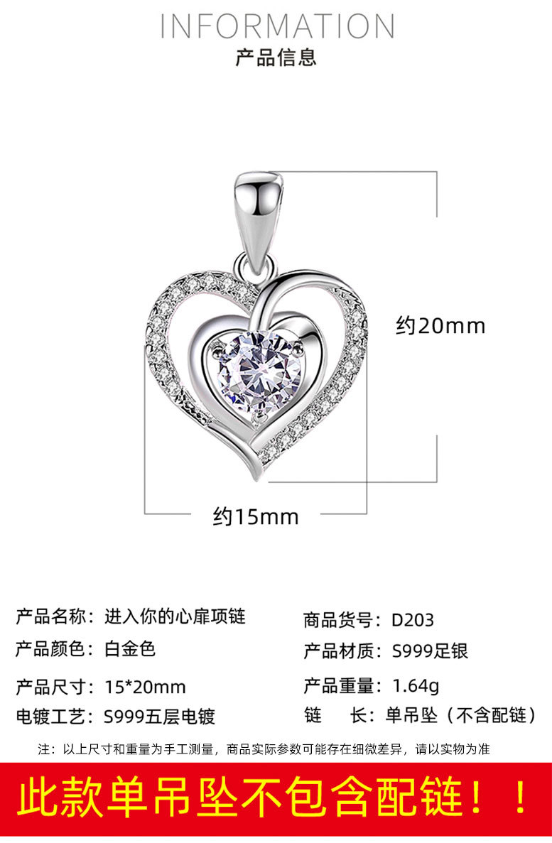 足银S999心扉纯银项链女网红潮锁骨链爱心吊坠生日礼物送女友批发