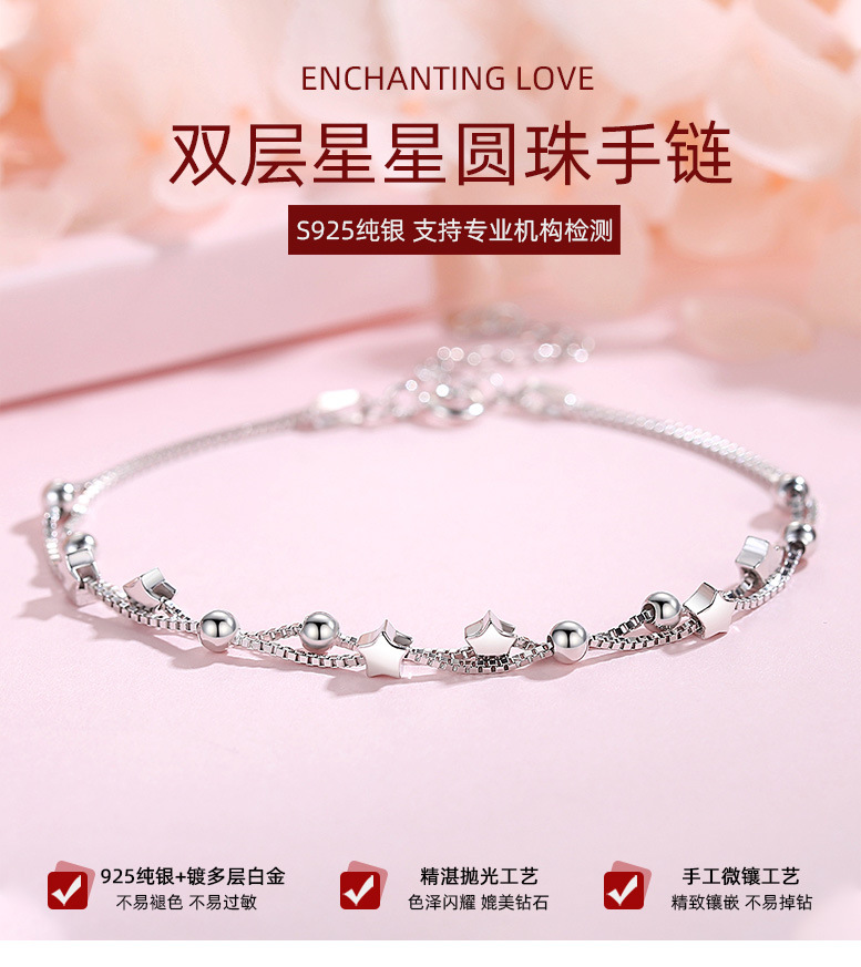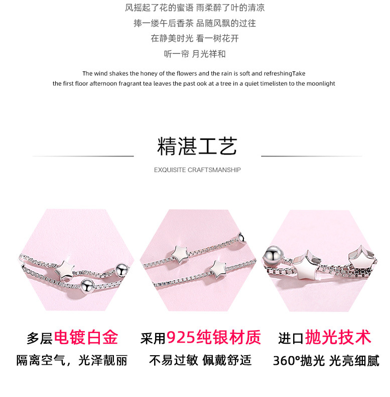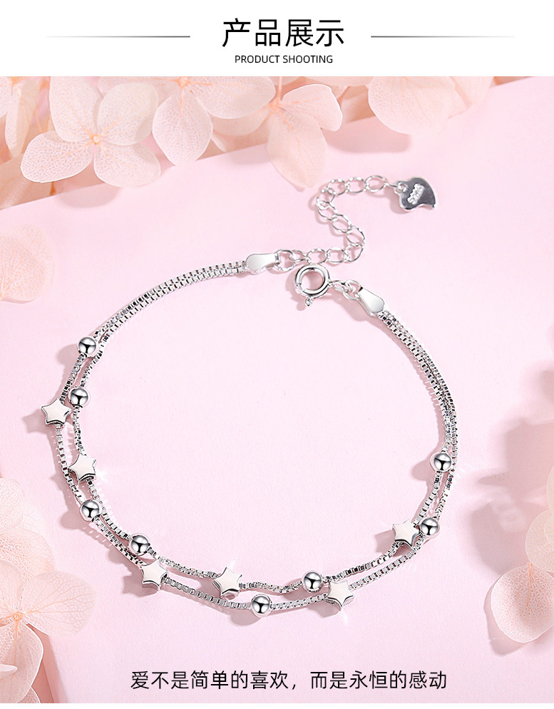星星925纯银手链女小众设计学生韩版简约个性森系情人节生日礼物