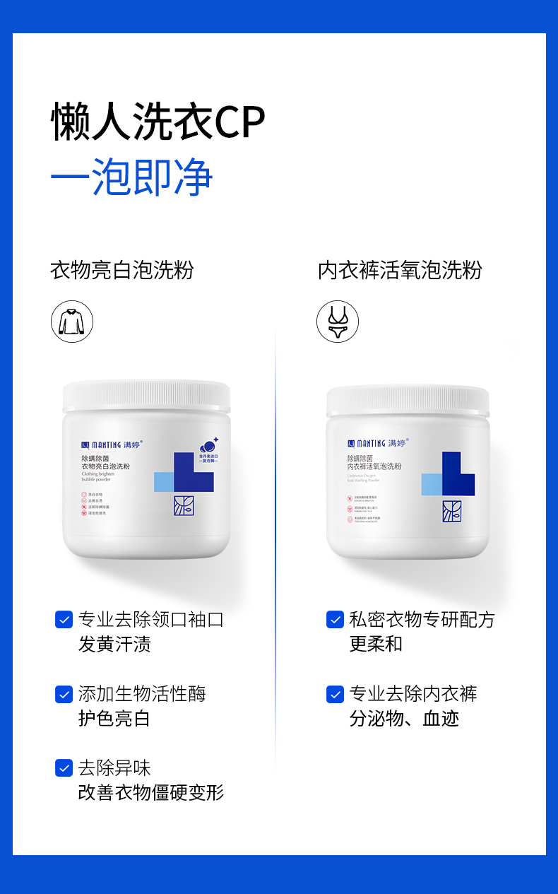 满婷除螨除菌内衣裤活氧泡洗粉*2罐