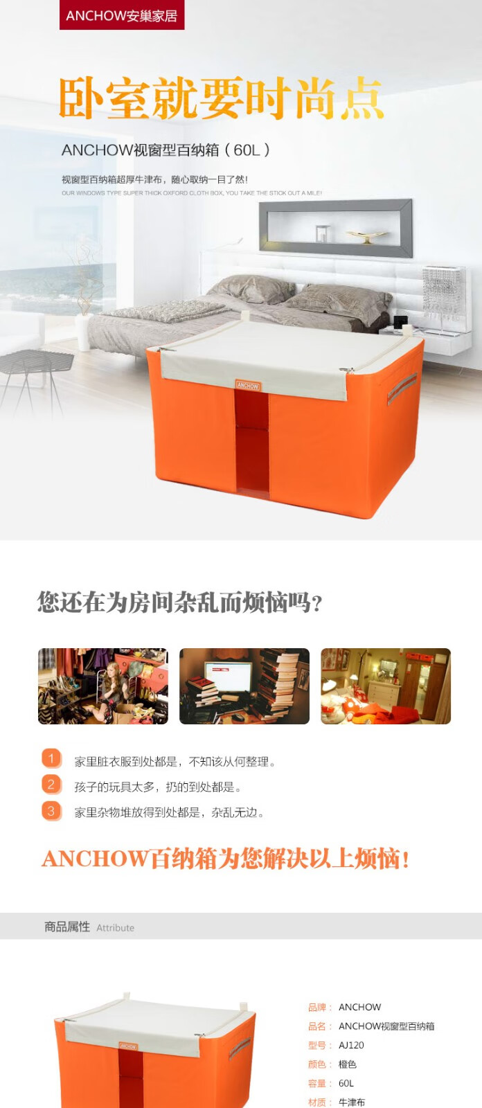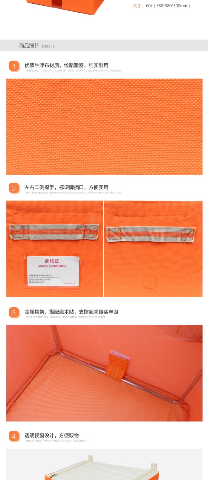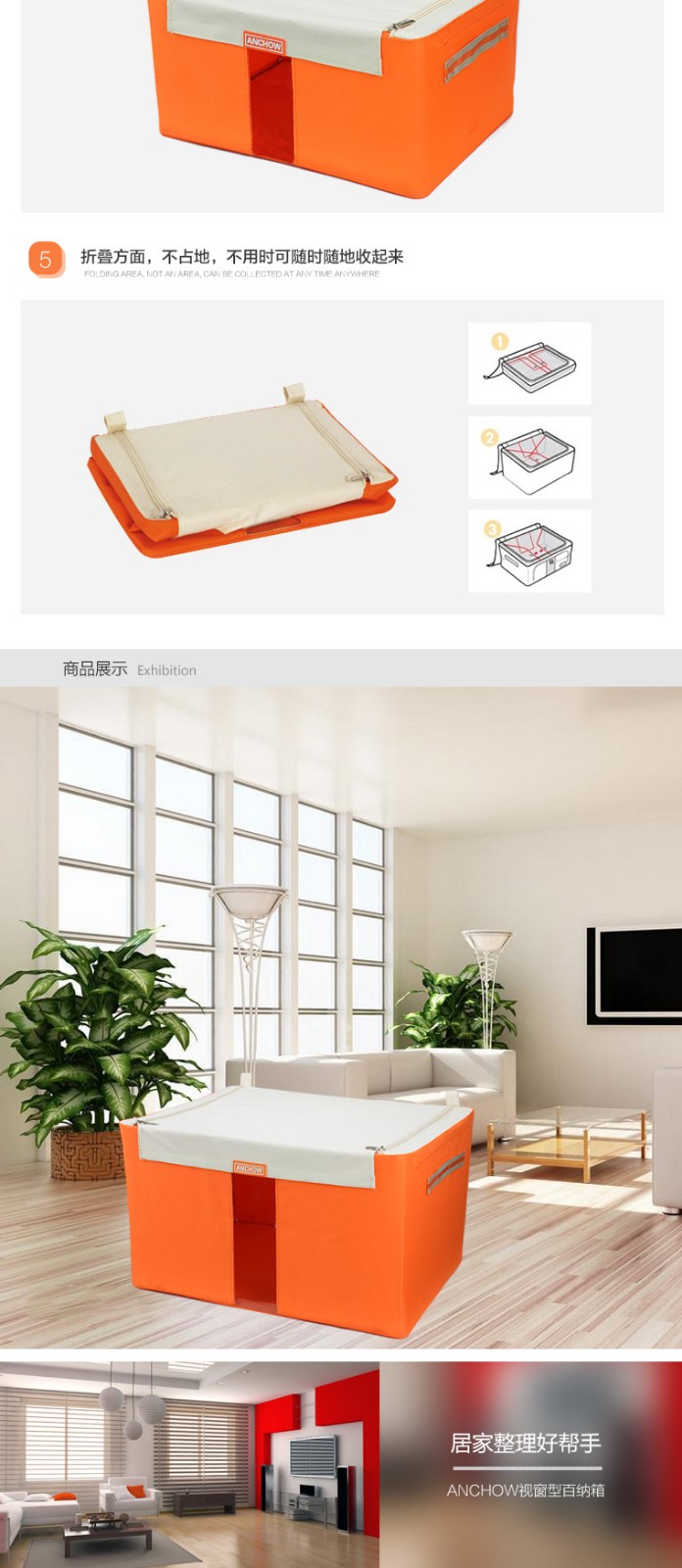 ANCHOW安巢家居 搬家收纳箱儿童玩具化妆品收纳盒衣物被子布艺整理箱牛津布储物箱子家用卧室衣柜衣橱 百纳箱 AJ116 橙 12