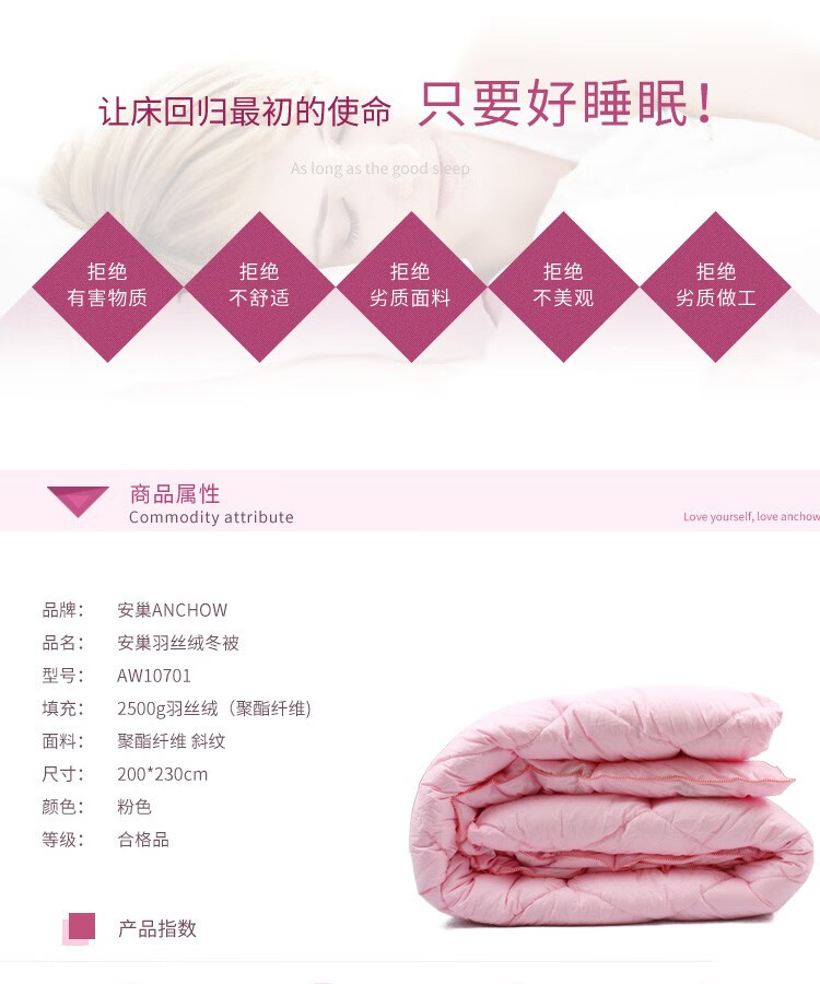 安巢家居 羽丝绒被子家纺保暖空调被子冬天秋冬被褥双人盖被冬被被芯空调被 羽丝绒被AW10702 3500g