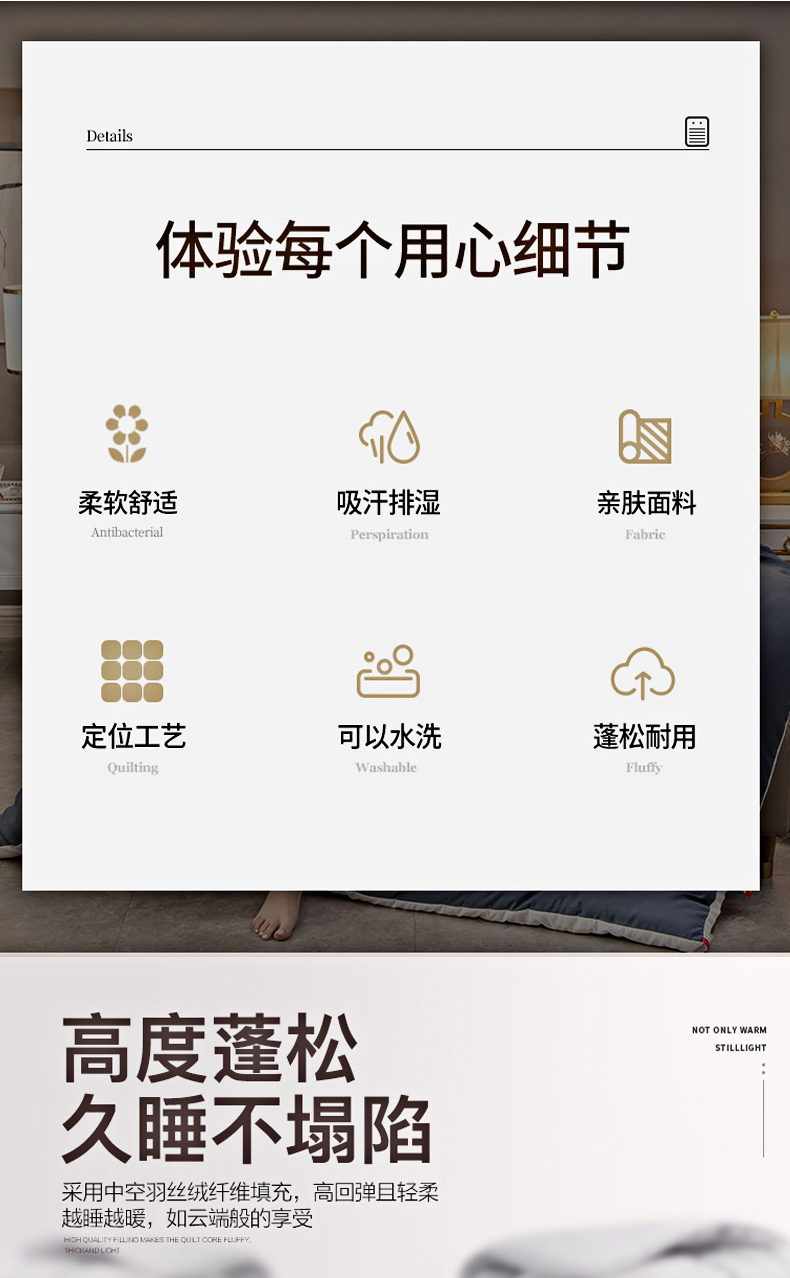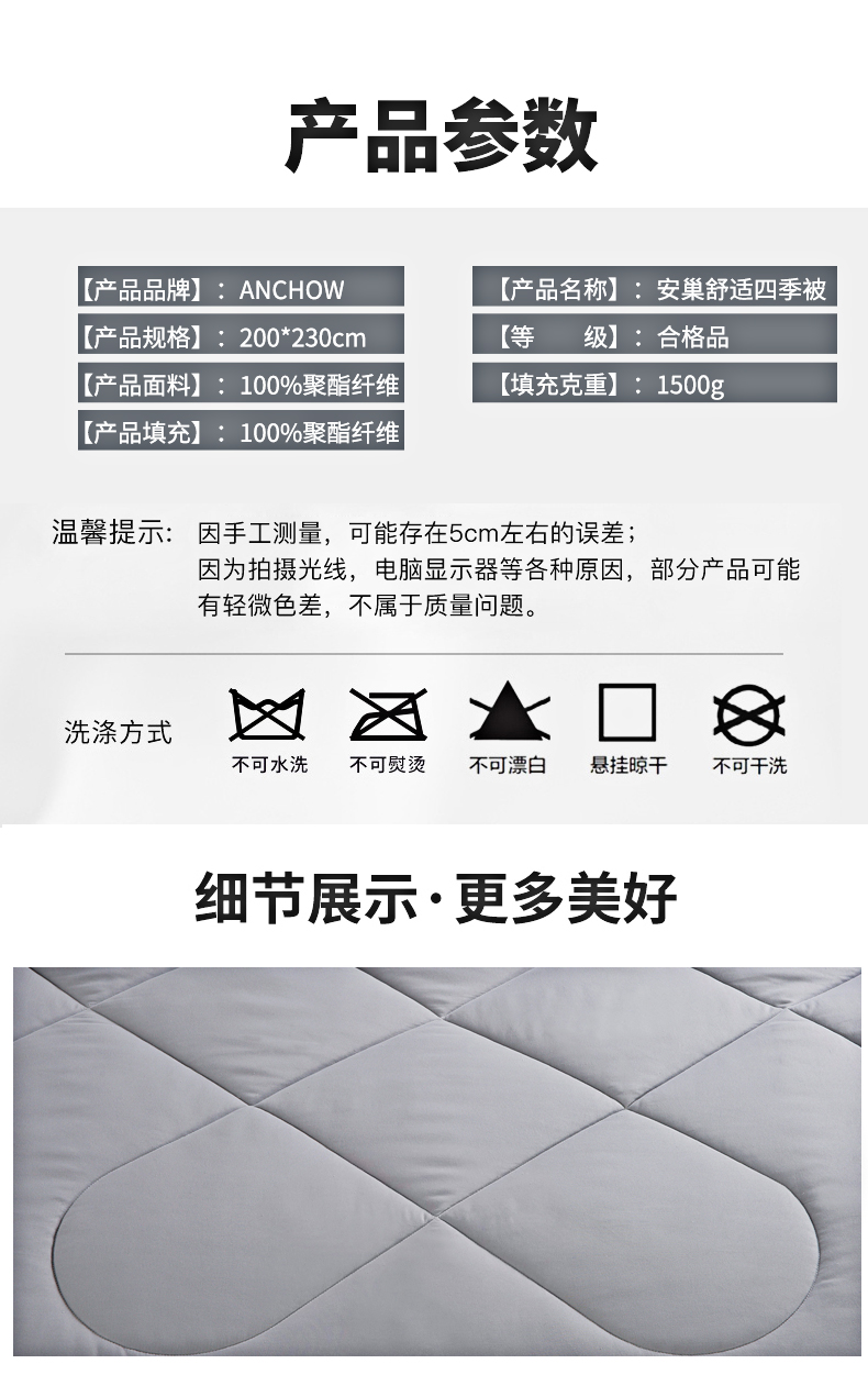 安巢家居(ANCHOW)宿舍四季被子被芯蓬松保暖透气七孔纤维双人七孔纤维春秋被 舒适四季被AW10704