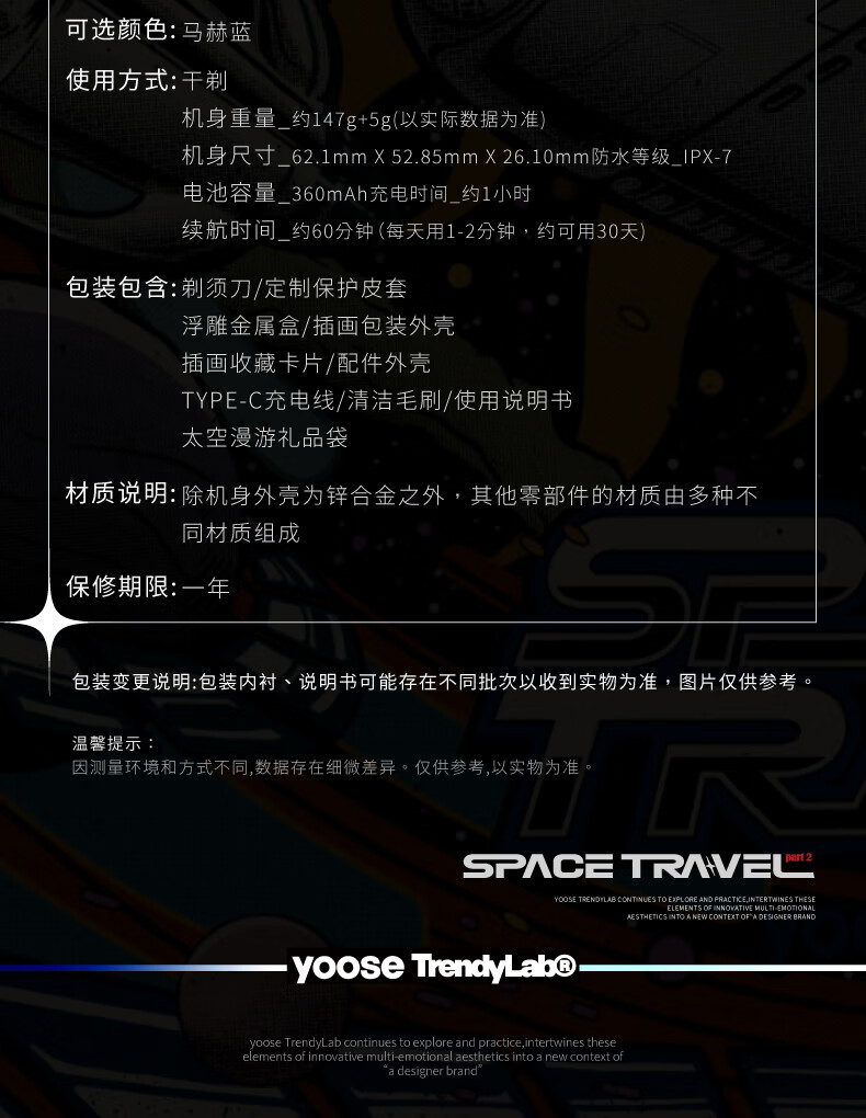 有色(太空漫游2代)电动剃须刀(渐变色)